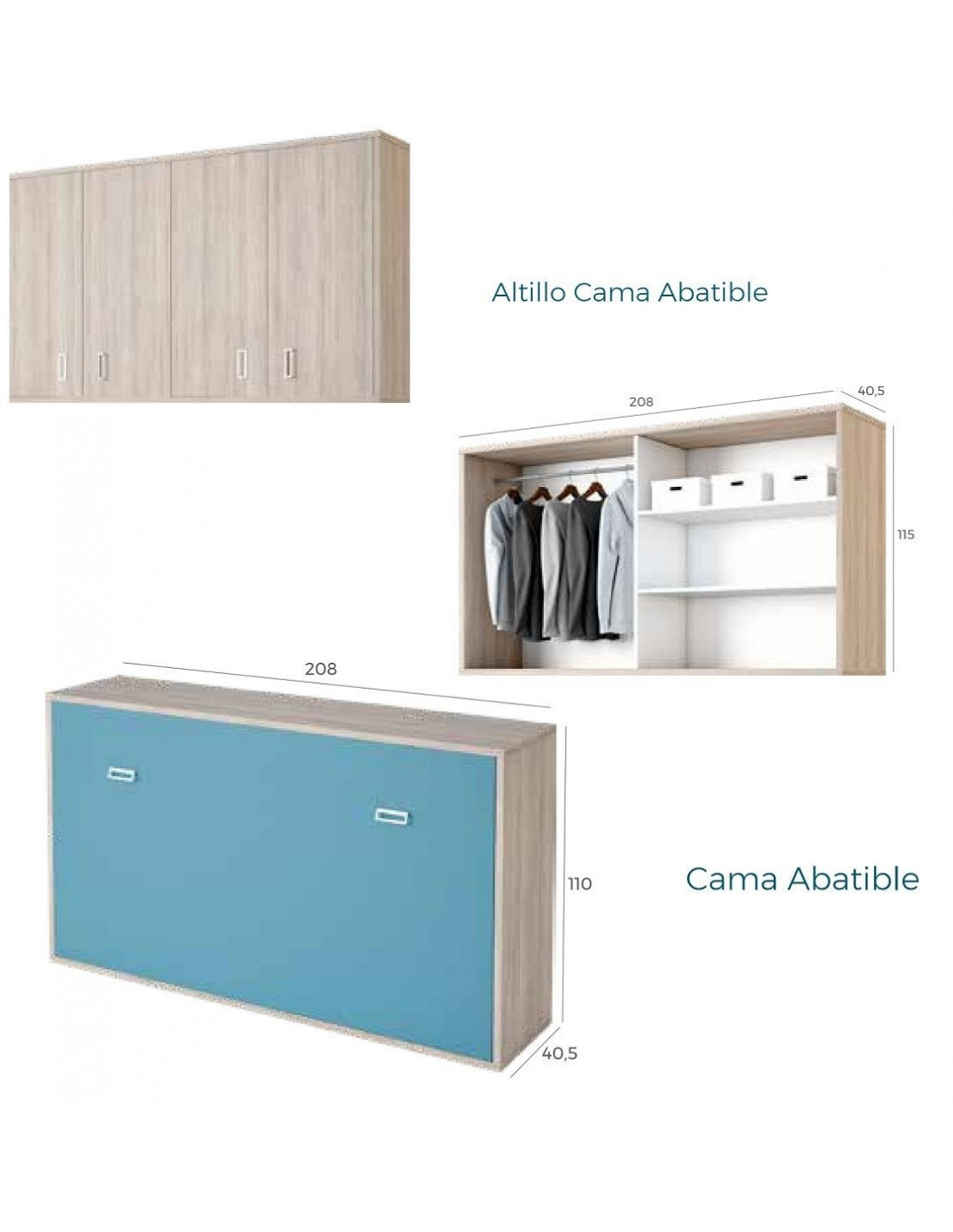 Este armario con cama abatible viene preparado para un colchón de 90x190 cm. Está disponible en una única medida: