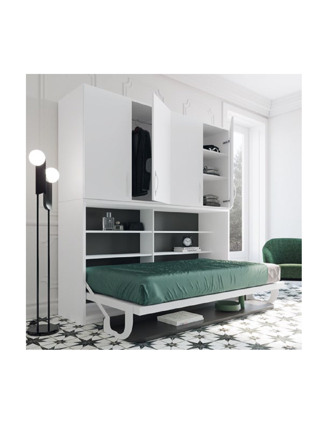 Calidad y diseño: las camas de esta colección son indeales para mantener una habitación ordenada y un gran espacio libre durante el día, creando ambientes abiertos y adaptables perfectamente a cualquier estancia, con especial utilidad en el caso de dormitorios de pequeñas dimensiones o estudios de habitación única.