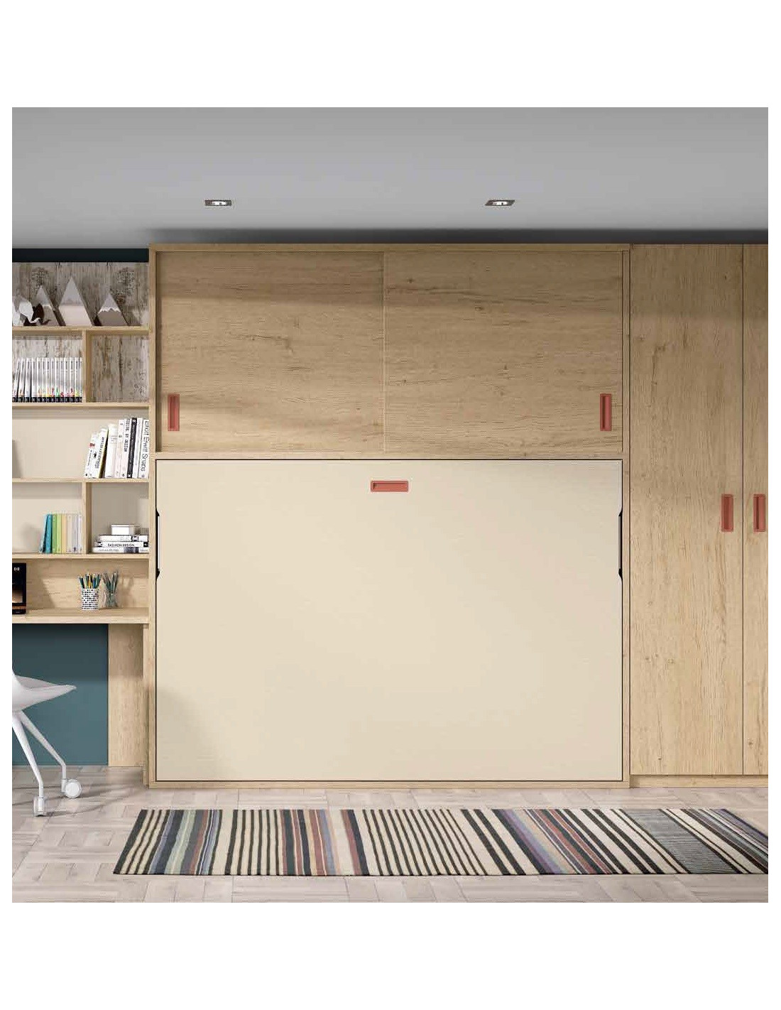 Cama abatible horizontal matrimonial ( colchones de 135 / 150 cm. ancho) con armario corredera integrado con capacidad de hasta 26 cm. de altura de colchón