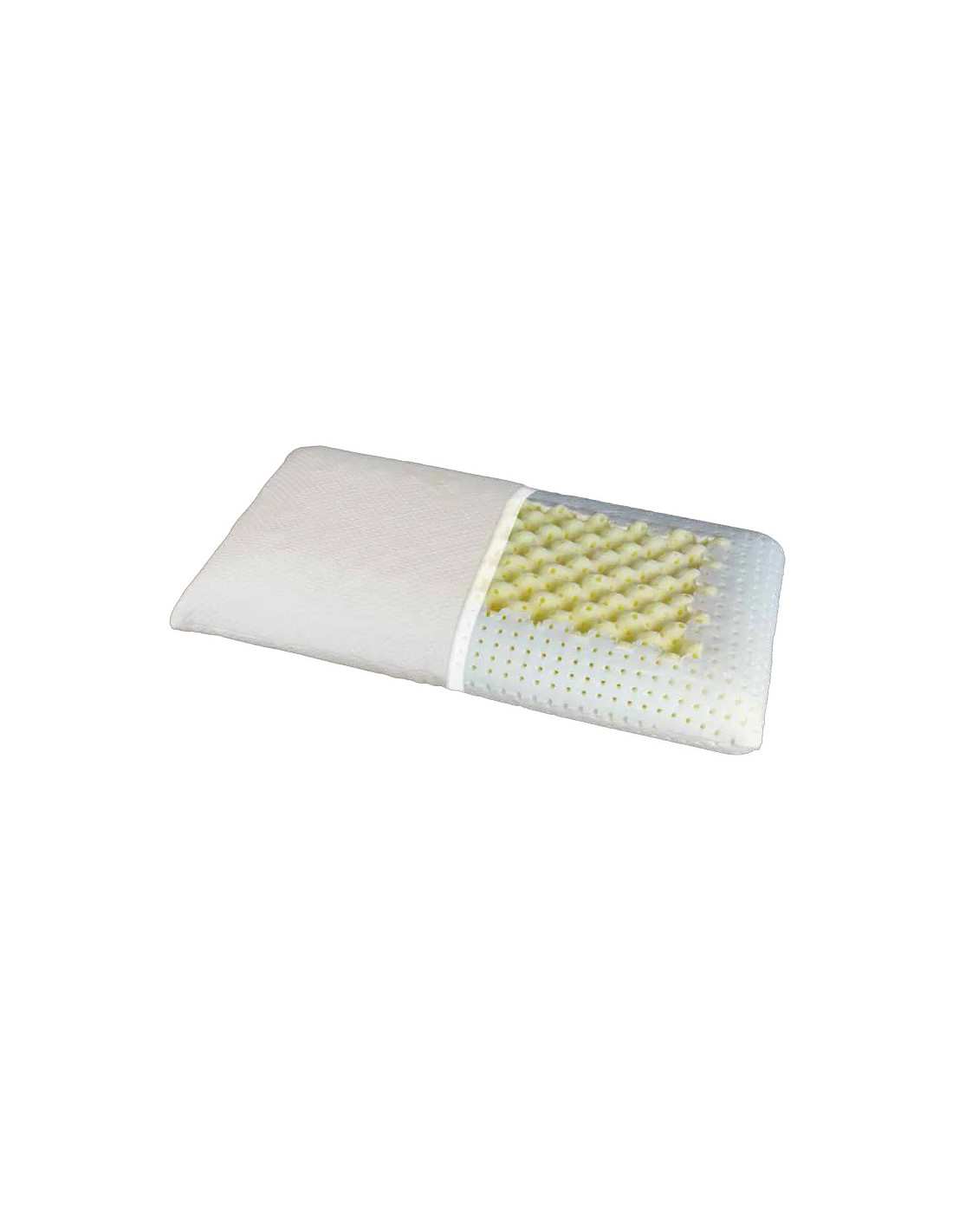 Almohada que conjuga firmeza y adaptación. Perímetro de Viscoelástica ViscoMind® termosensible hidratada y perforada.