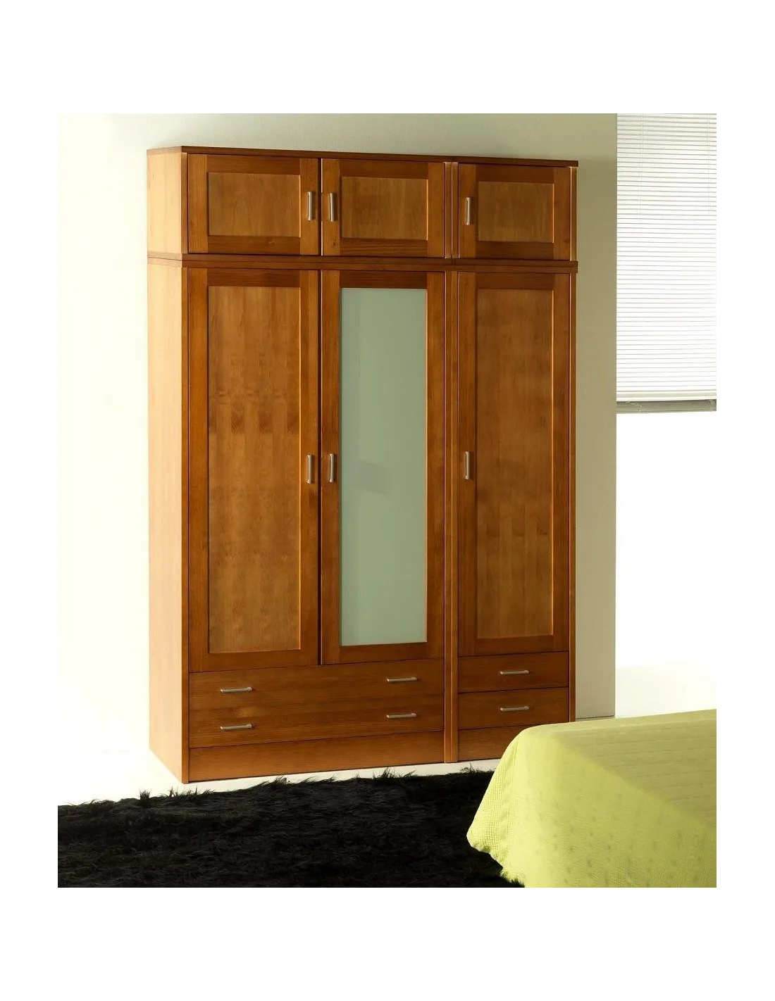 Este armario de madera Nova Lacobel de diseño colonial tiene el altillo incluido y viene con las siguientes medidas de alto x largo x fondo: