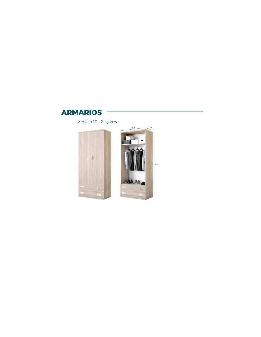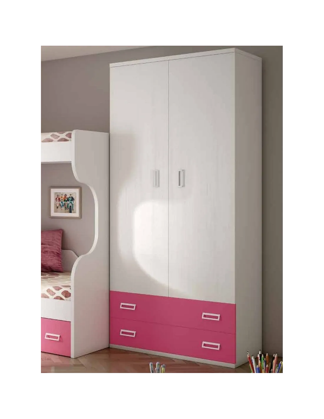 Armario juvenil Lolli dos puertas y dos cajones altura 225 cm. con diez colores a elegir