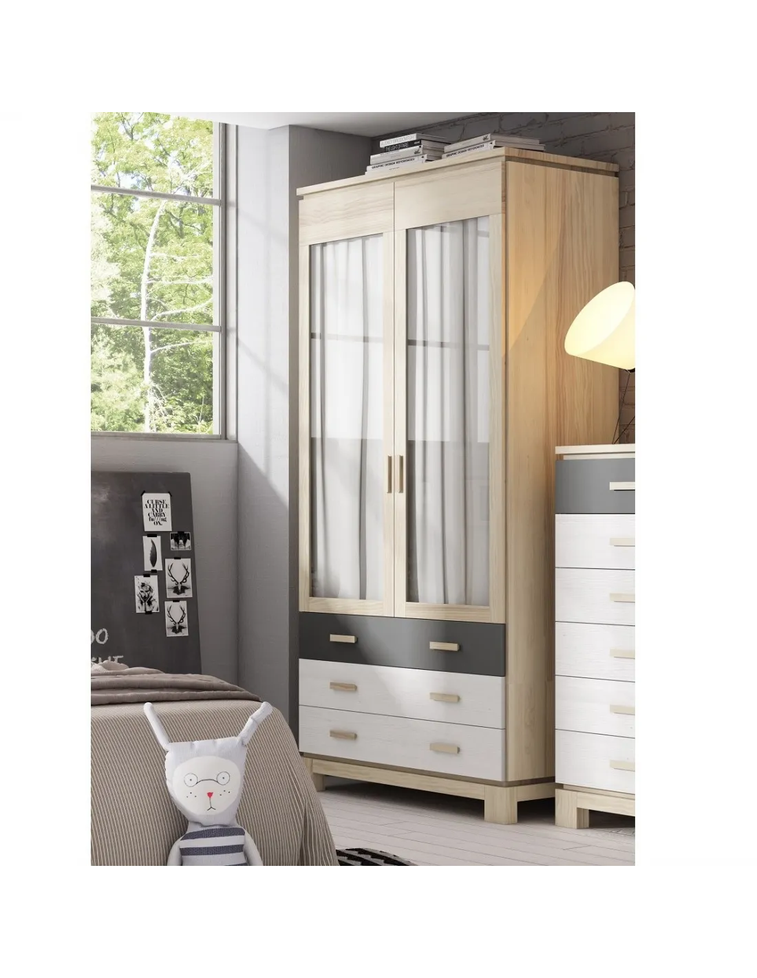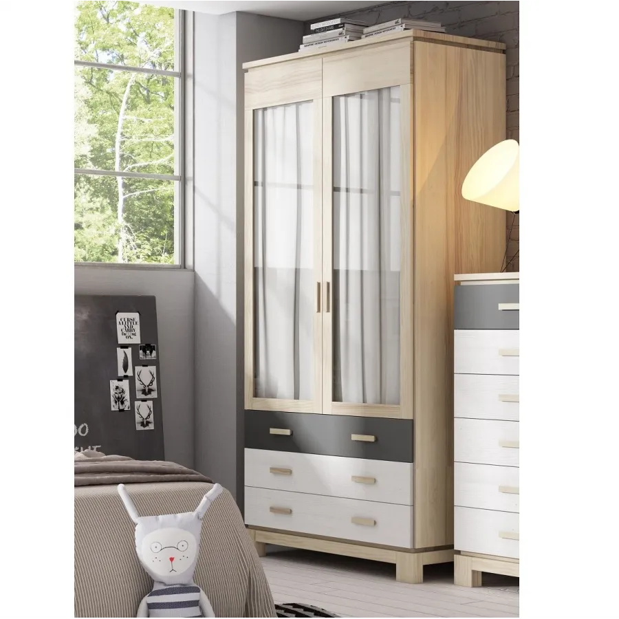 Armario de dos puertas en madera maciza de pino