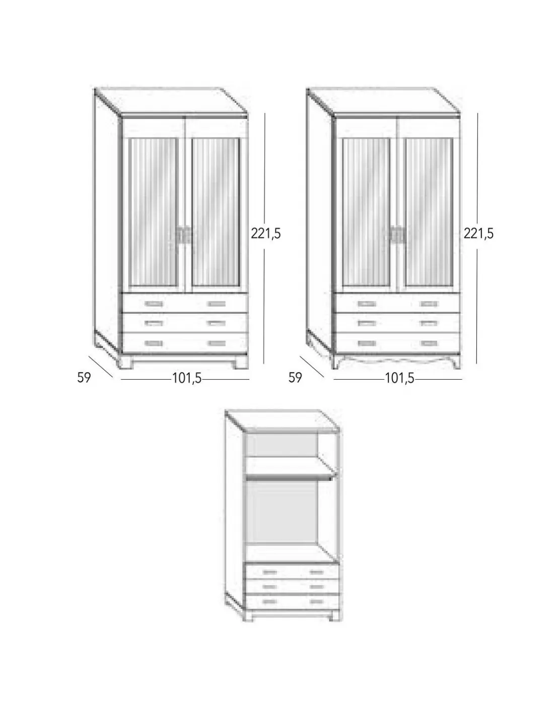 Este mueble puede venir con dos terminaciones a suelo, a elegir entre Base Recta o Base Curva, que dota al mueble de una apariencia de rasgos modernos o de tendencia clásica, según nuestros gustos.