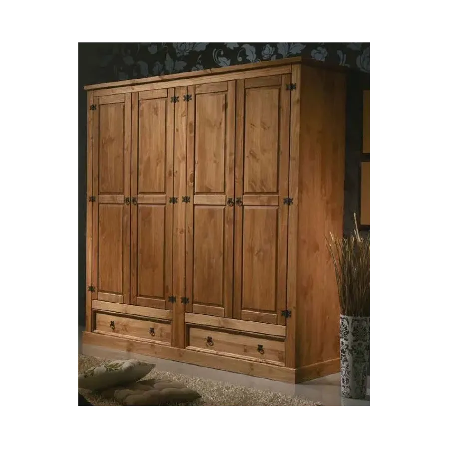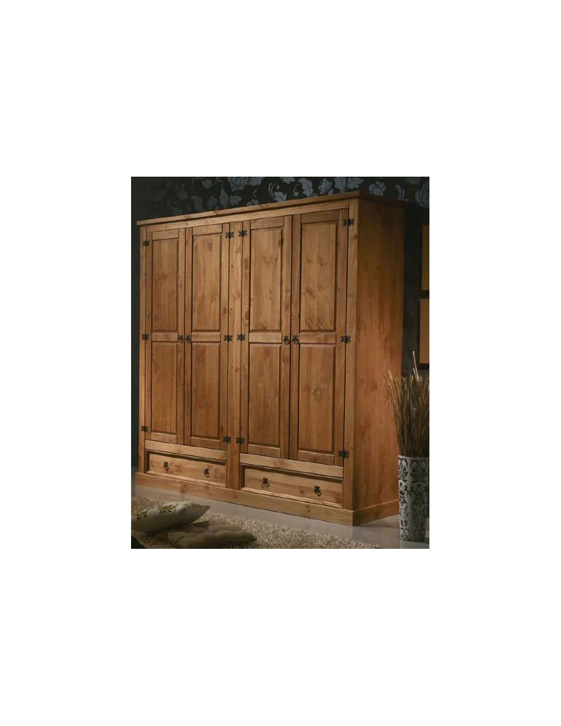 Armario cuatro puertas de estilo rústico en madera maciza de pino. Muebles de dormitorio de importación en formato kit.