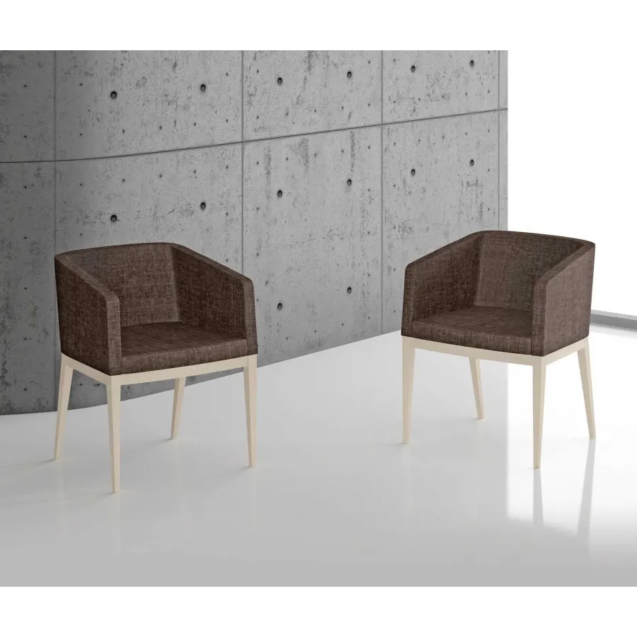 Disponible con patas en madera de haya barnizada o lacada, tapizados antimanchas a elegir.