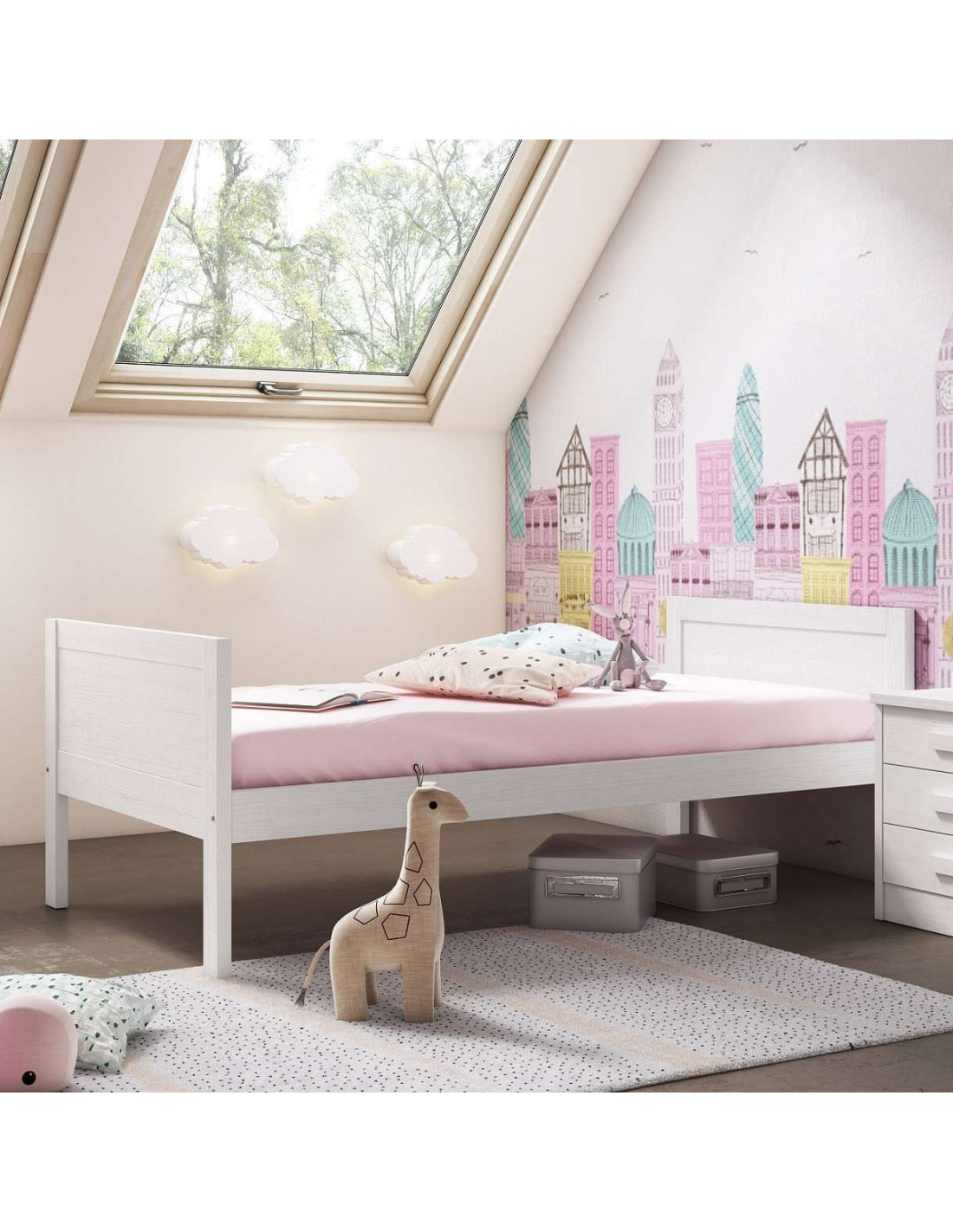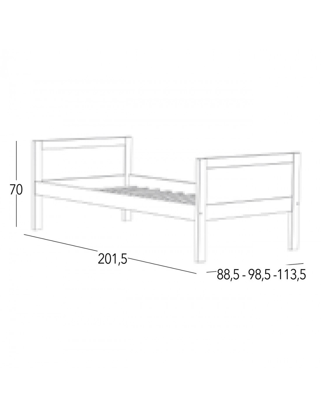 Se compone de cabecero, piecero, largueros y somier, todo ello fabricado en madera de pino maciza. Estas camas incluyen el somier de lamas de madera.