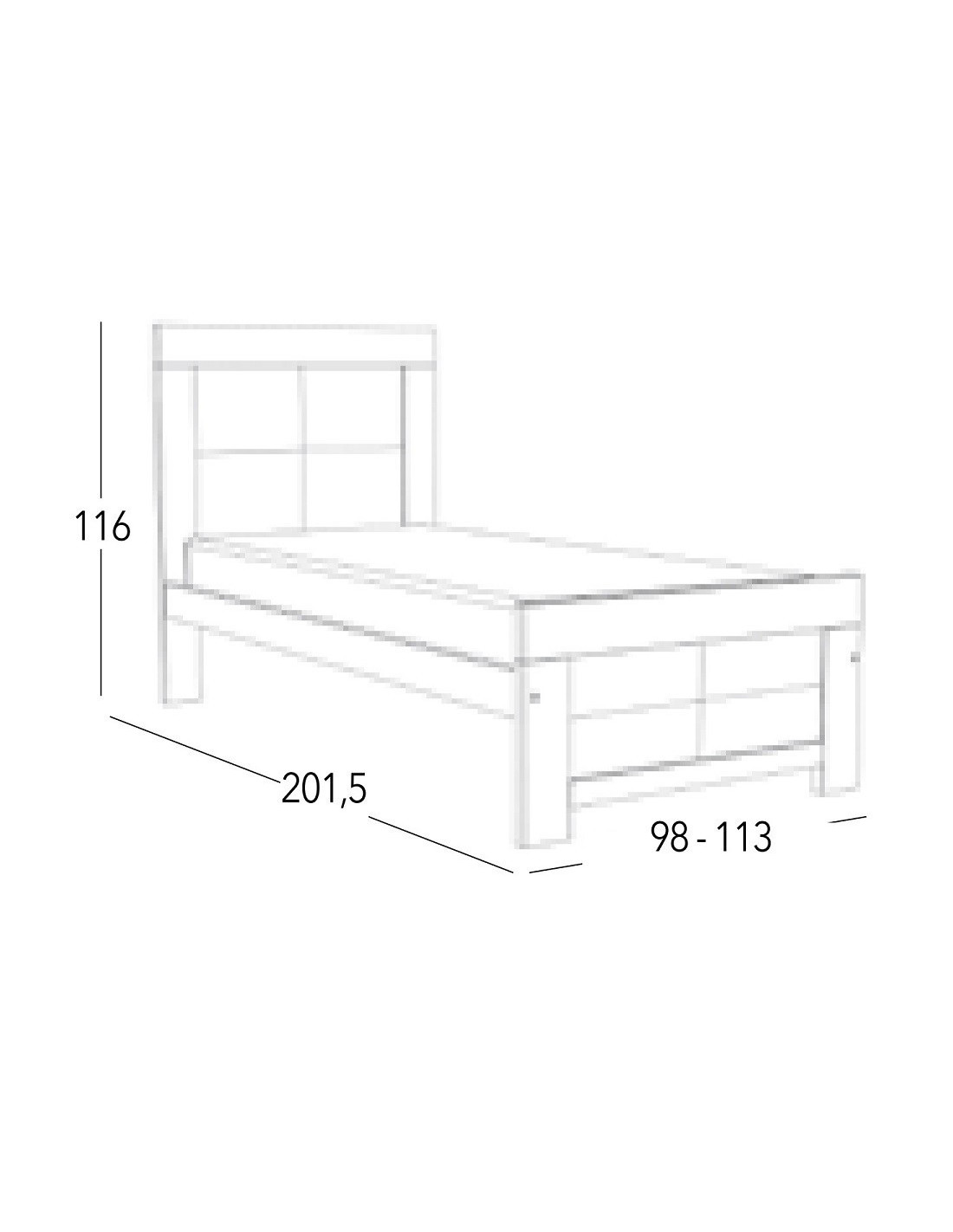 Se compone de cabecero, piecero, largueros y somier, todo ello fabricado en madera de pino maciza. Estas camas incluyen el somier de lamas de madera.