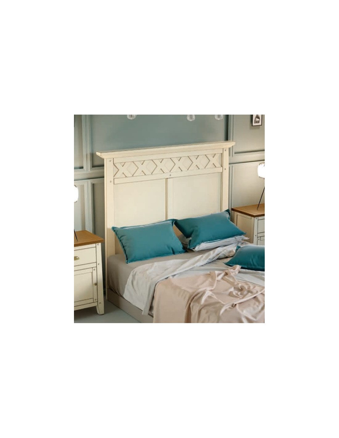 Cabecero fabricado en madera de pino, hecho en España. Cómoda con seis cajones para dormitorio disponible en terminaciones barnizadAs, disponible para comprar solo la cómoda.