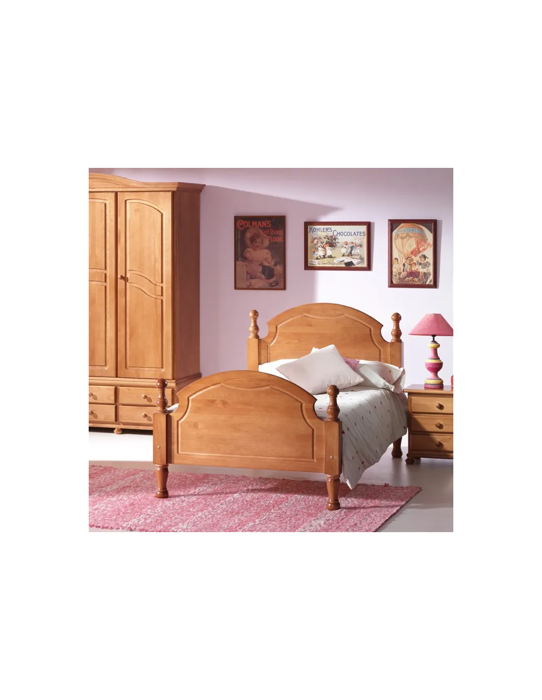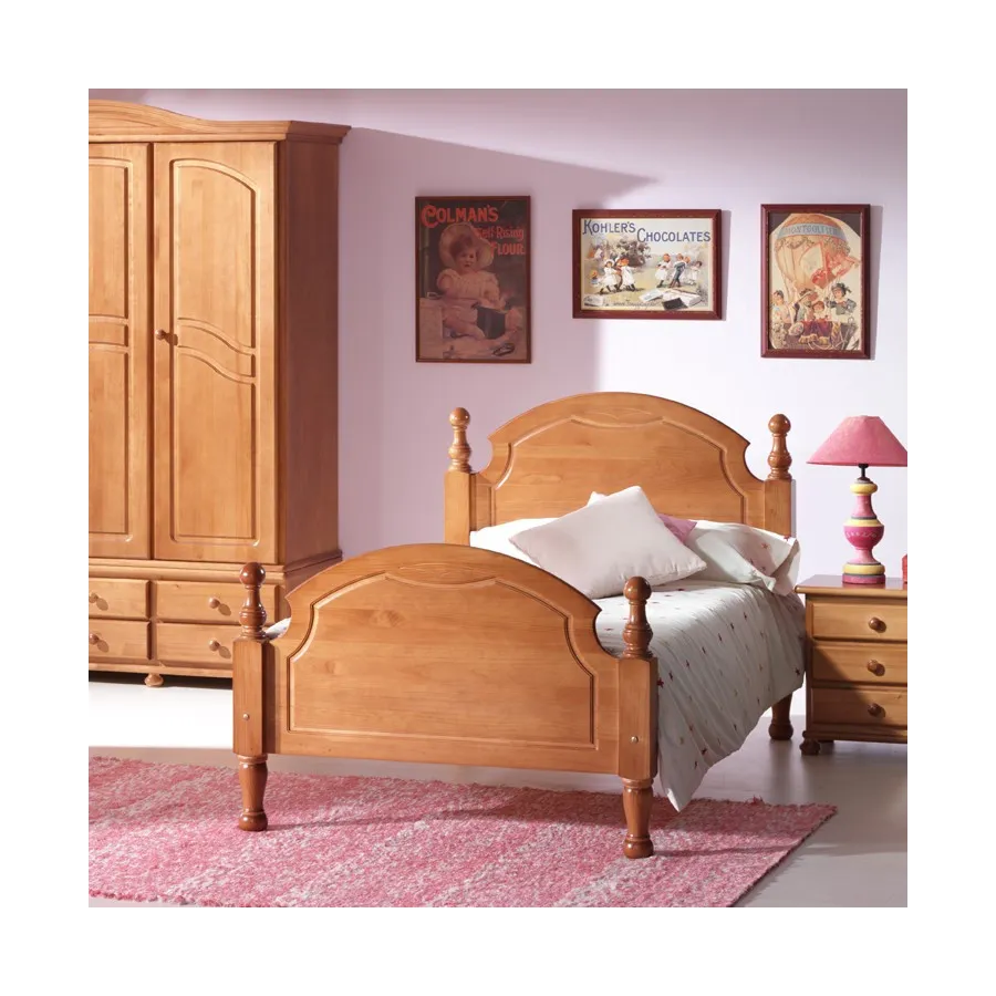 Cama completa en madera de pino macizo en colores variados