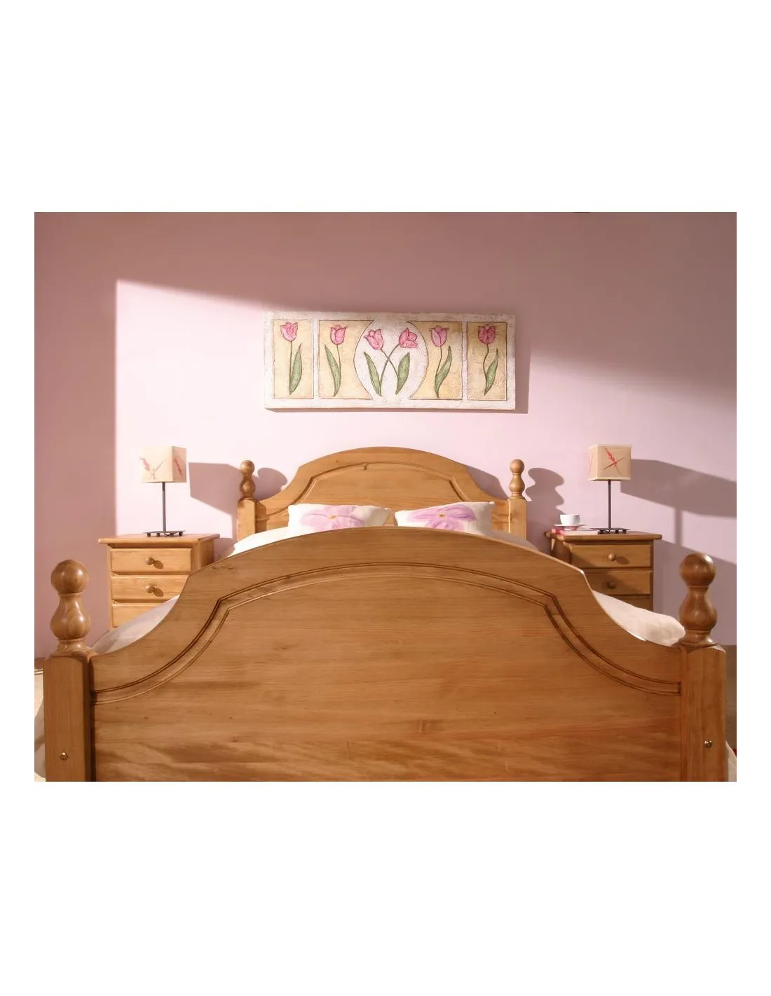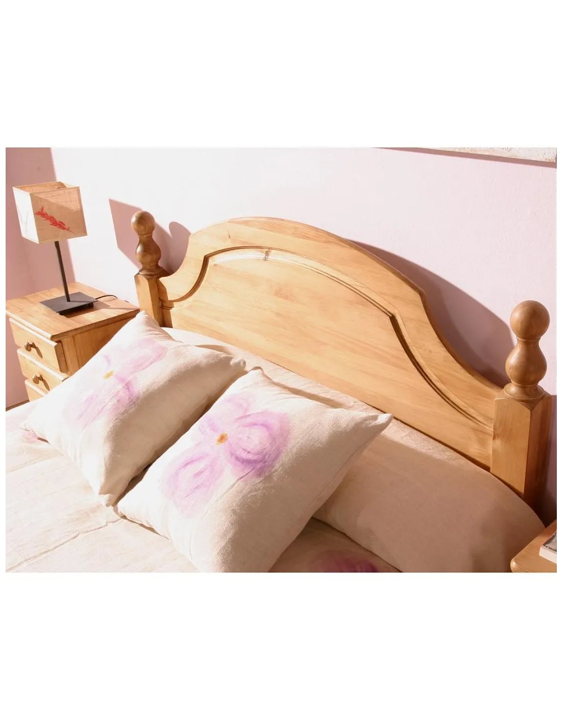 Cama completa o solo cabecero de estilo provenzal fabricado en madera maciza de pino y de fabricación española.