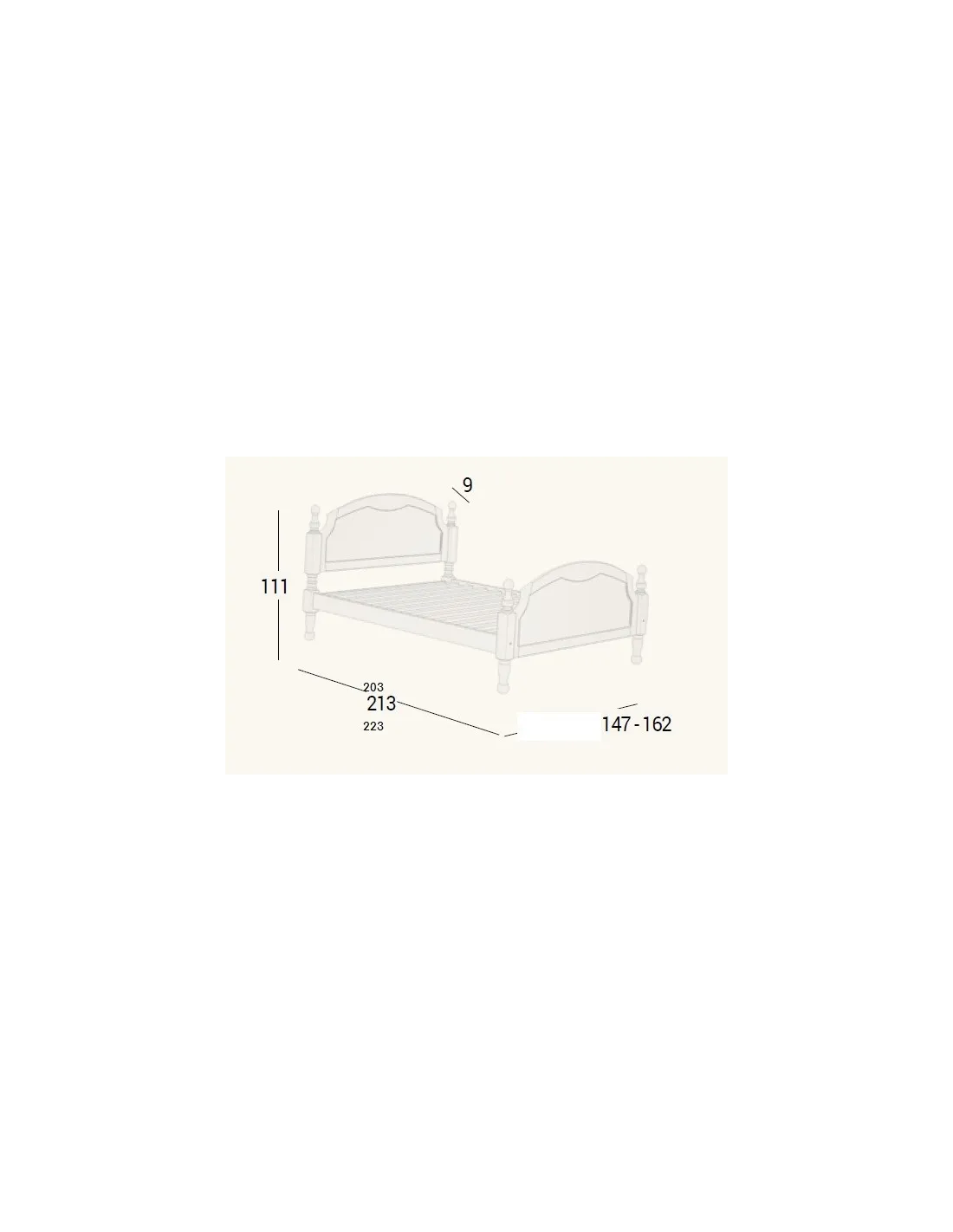 - Cama 150 cm.: ancho de 162 cm.