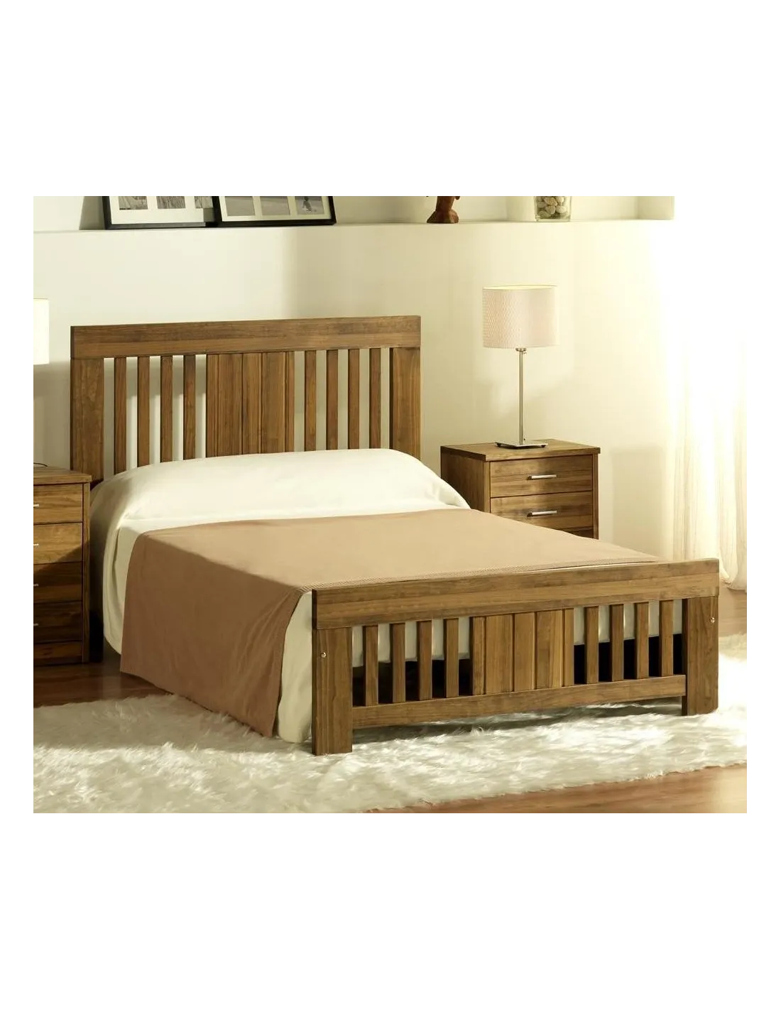 Esta cama colonial de madera maciza se compone del cabecero y piecero unidos mediante largueros de madera sobre los que se asientan el somier de lamas de madera (incluido). Tiene las siguientes medidas:
