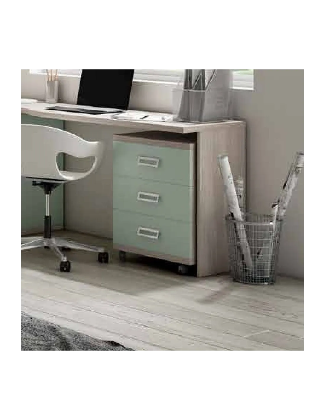 Mesita con tres cajones de guía metálica y ruedas para su fácil desplazamiento