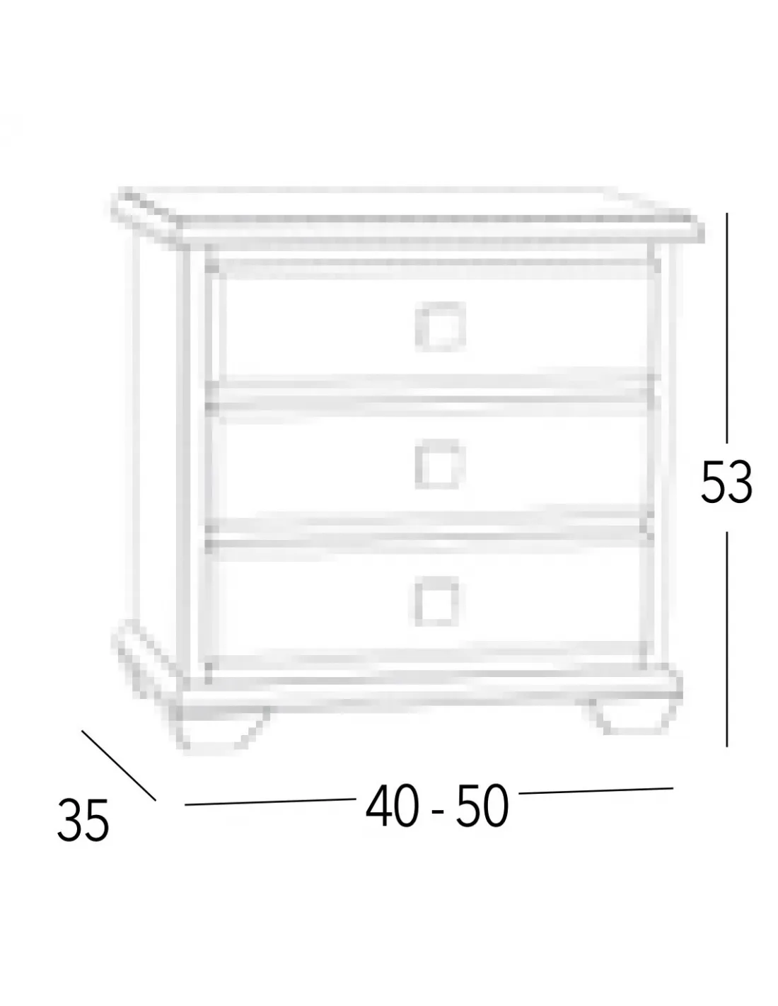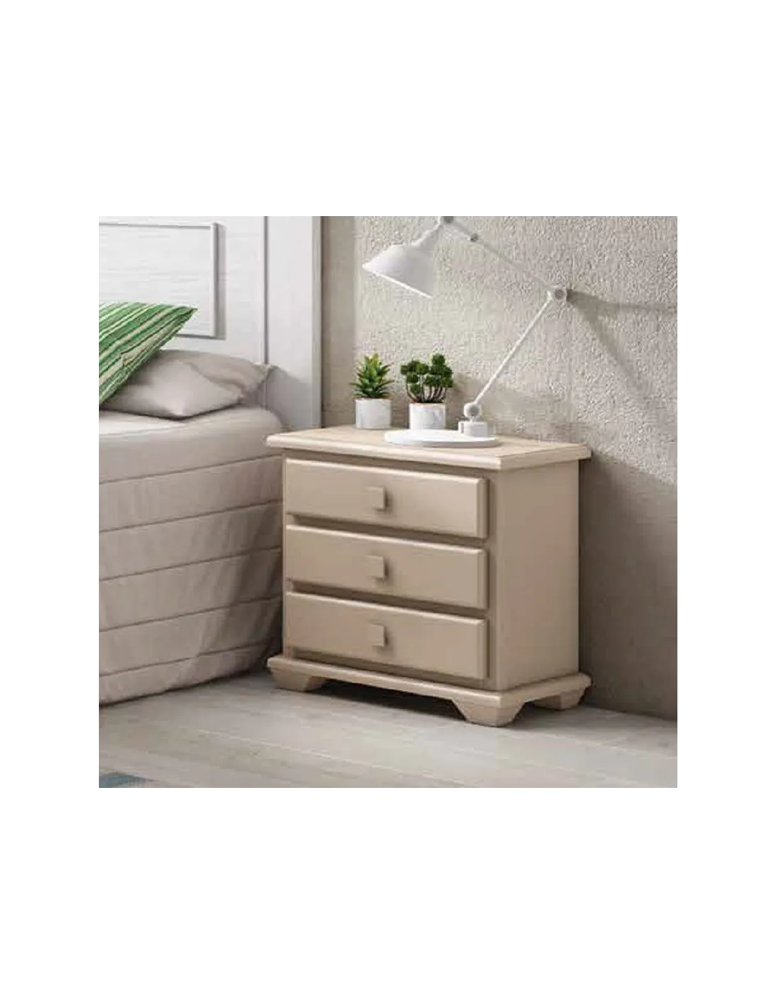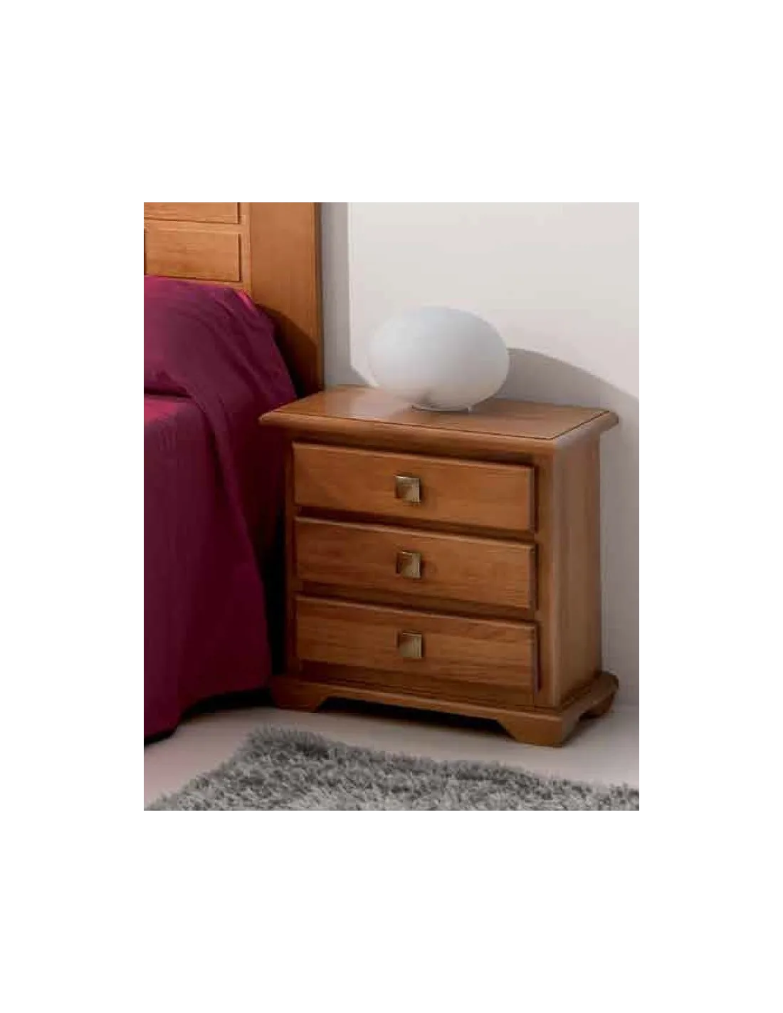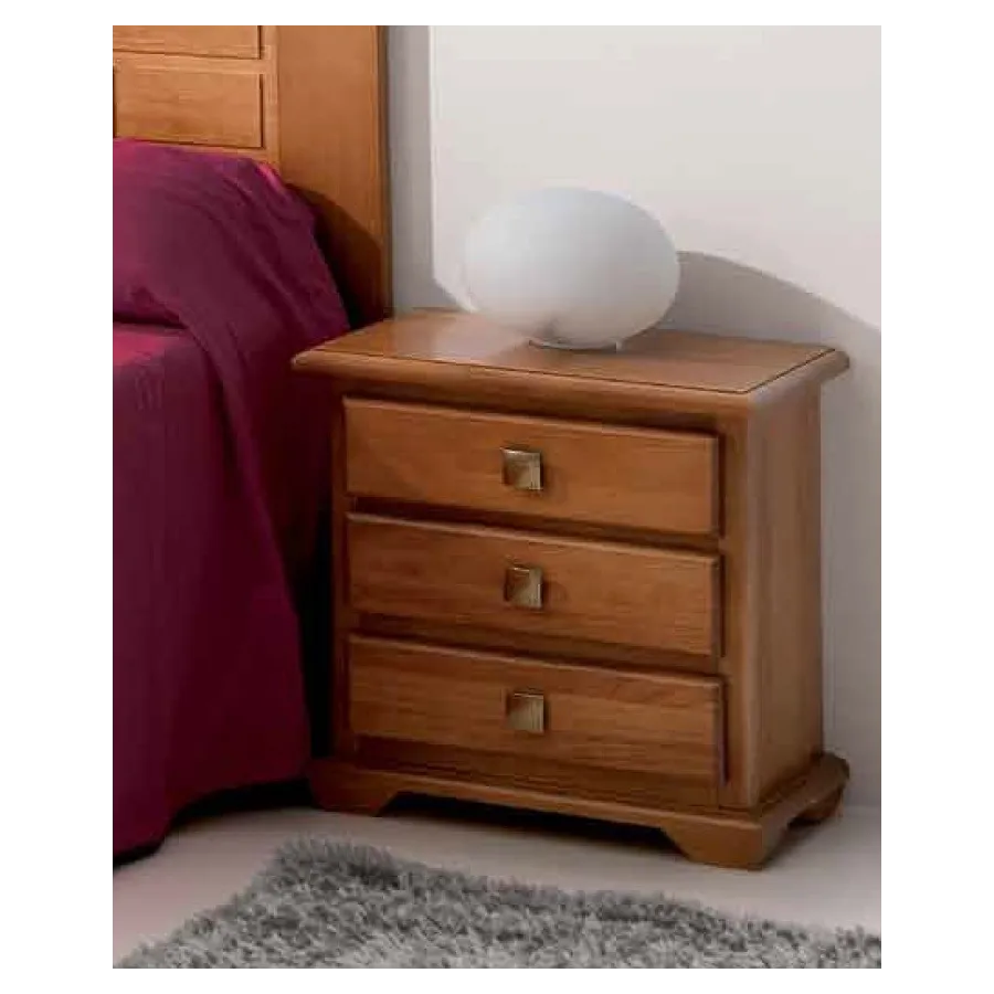 Esta mesita de noche Maya 3C está disponible con tres cajones de guía de madera y gran capacidad de almacenaje, con las siguientes medidas totales en cm.: