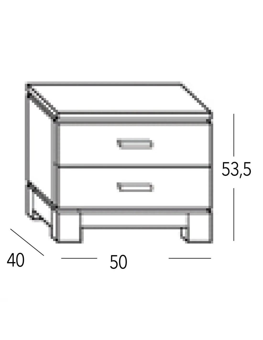 Esta mesita de noche Vega 2C está disponible con tres cajones de guía metálica y gran capacidad de almacenaje, con las siguientes medidas totales en cm.: