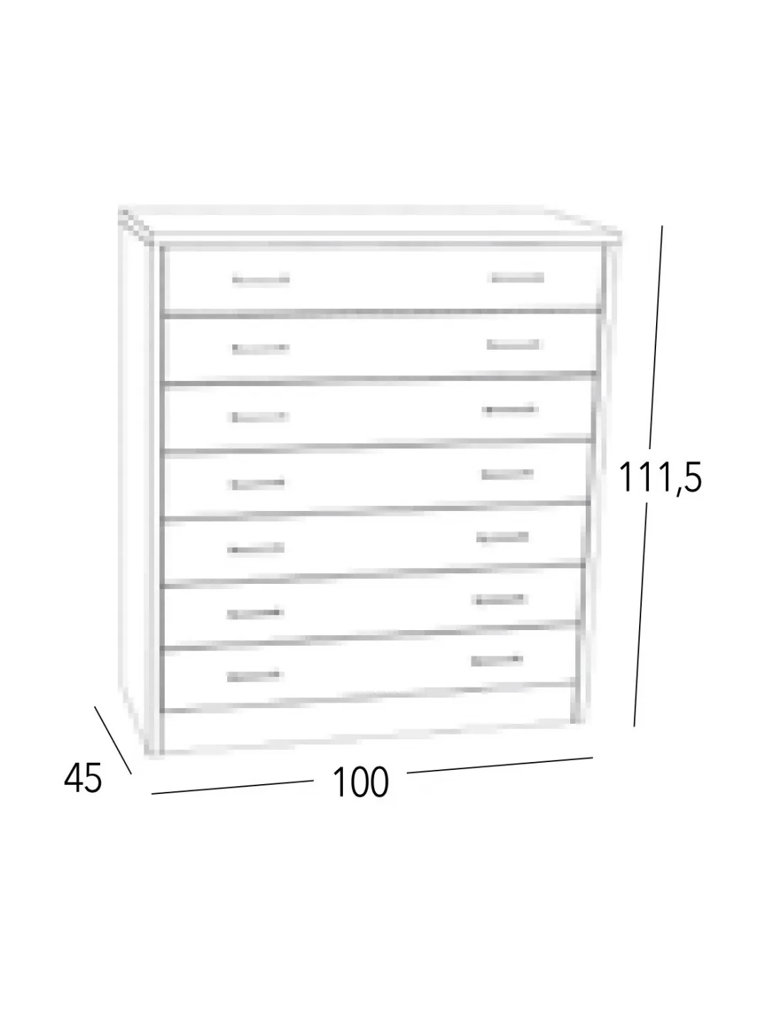 El sinfonier madera maciza 7C está disponible con siete cajones de guía metálica de deslizamiento suave con gran capacidad de almacenaje y tiradores a elegir. Presenta las siguientes medidas totales en cm.: