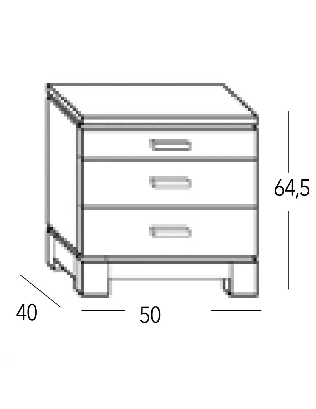Esta mesita de noche Vega 3C está disponible con tres cajones de guía metálica de deslizamiento suave y gran capacidad de almacenaje, con las siguientes medidas totales en cm.: