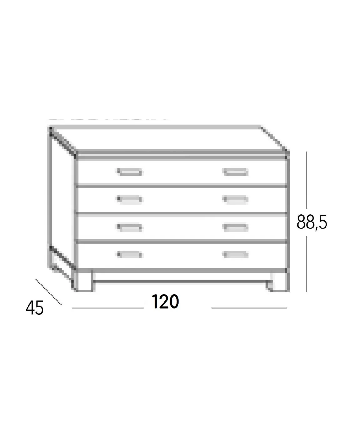 Esta cómoda VZ 120 5C está disponible con cinco cajones de guía metálica con gran capacidad de almacenaje. Presenta las siguientes medidas totales en cm.: