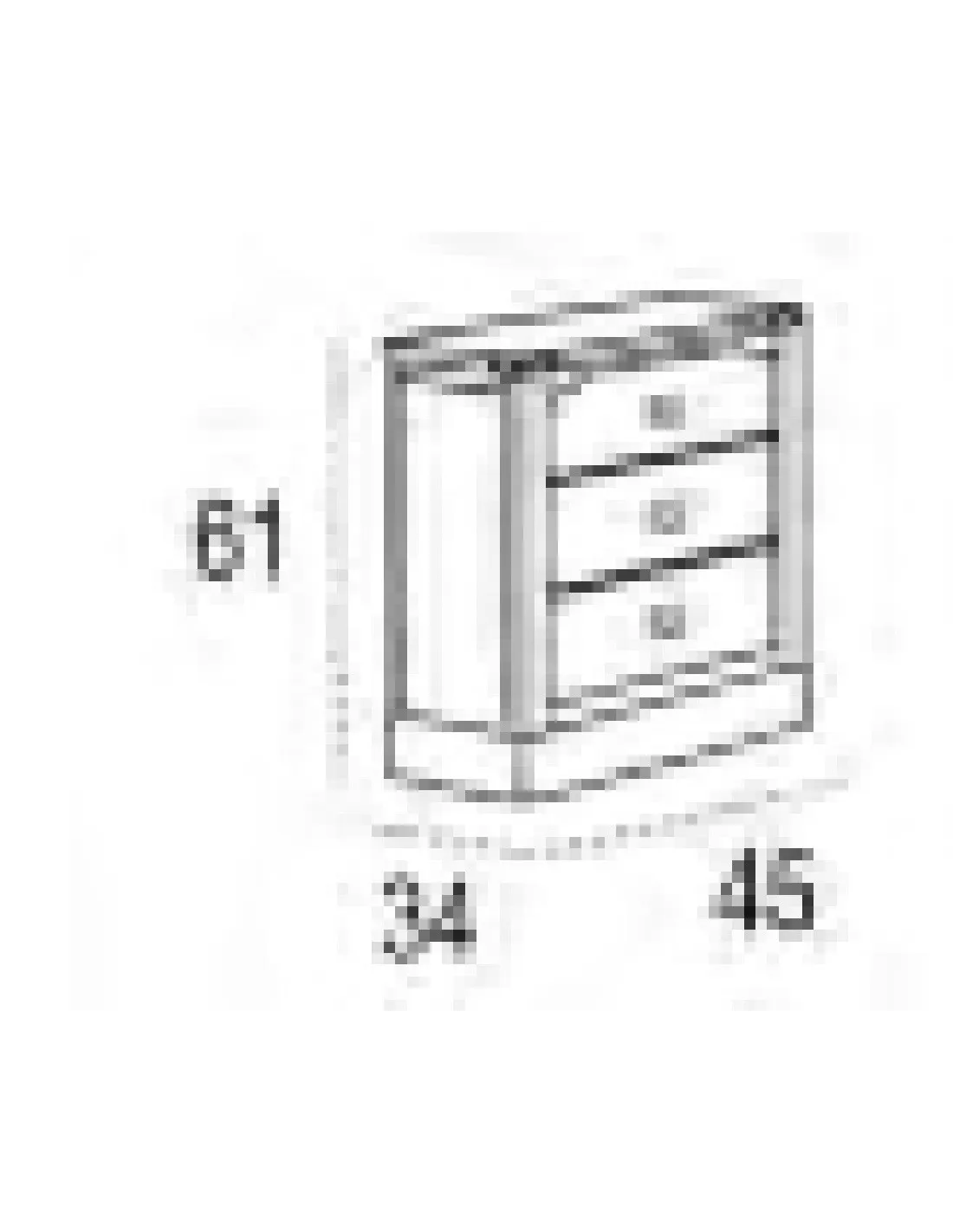 Esta mesita de noche colonial 45 tres cajones está fabricada en madera de Fresno y tiene las siguientes medidas (largo x alto x fondo en cm.): 45 x 61 x 34