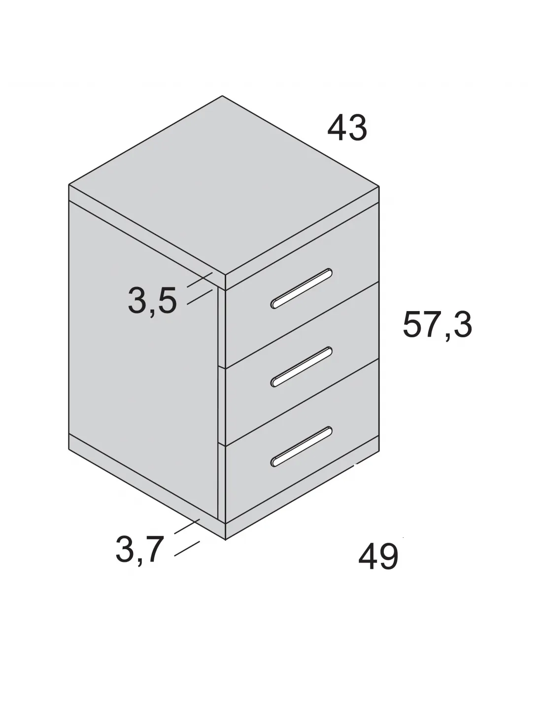 Esta mesita noche 3 cajones y 49 cm. viene con cajones de cierre amortiguado y tiene las siguientes medidas totales: