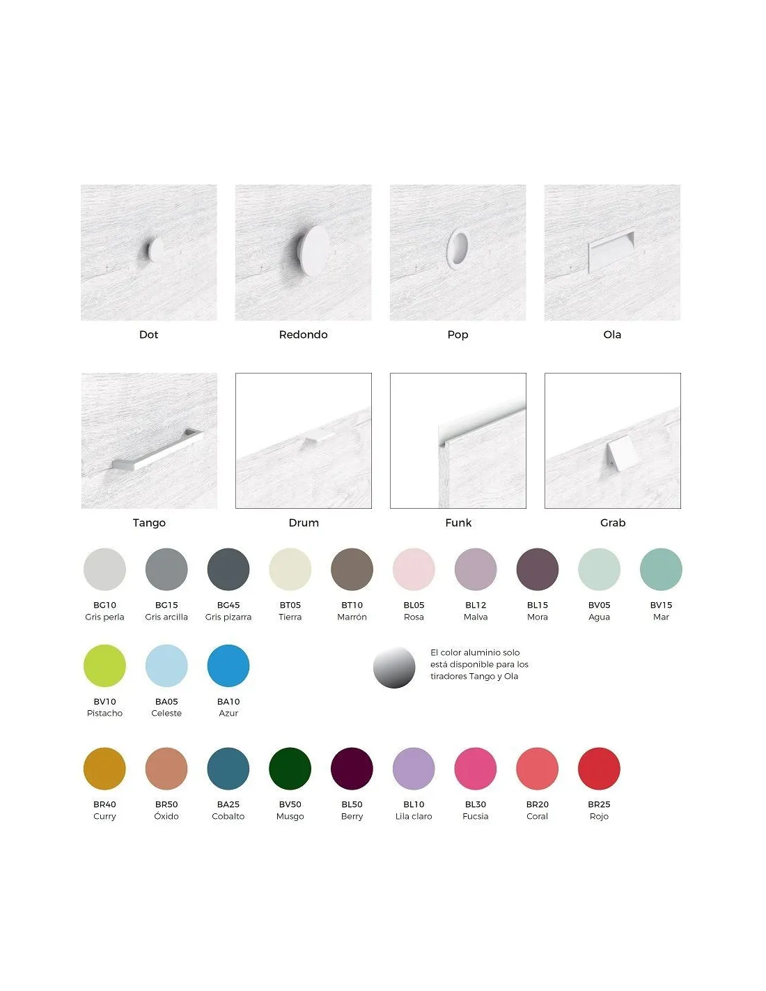 - Tiradores: por defecto se envía el modelo que aparece en la foto principal.