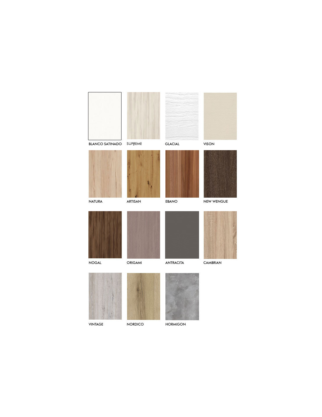 - Colores base: aplicables al cajón exterior, son los colores blanco - olivo - antracita - cerezo - roble - wengué - chocolate - vison - fresno - glacial - vintage - cemento - cambrian - ébano.