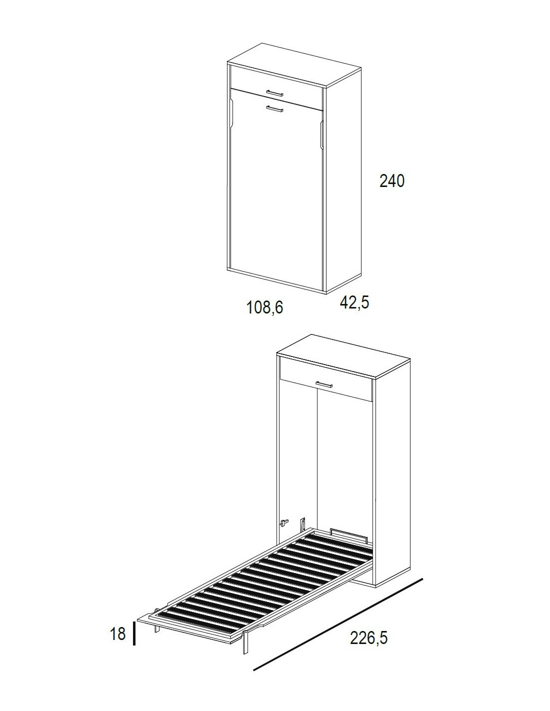 CAMA VERTICAL WT ABATIBLE 90 / 105 CON ALTILLO H240 F42.5