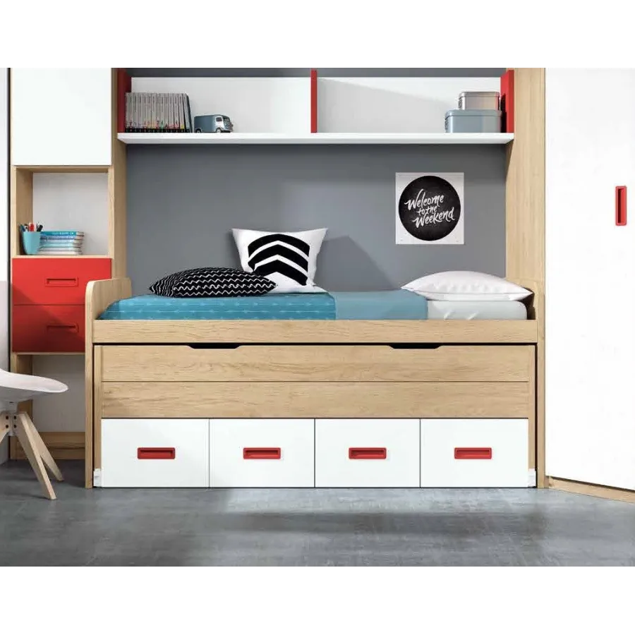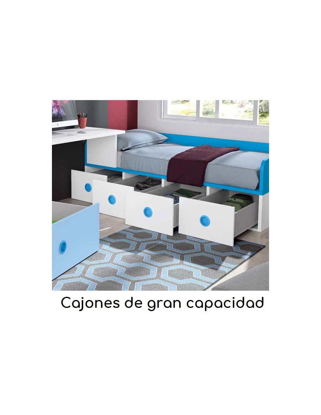 Cama compacta multimedida base 20 y 4 contenedores de gran capacidad con guía metálica autocierre