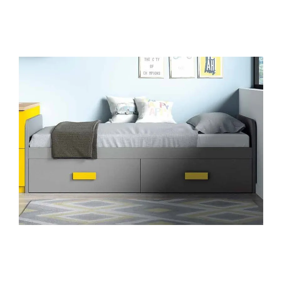 Esta cama nido con 2 cajones apoyados a suelo de gran capacidad con ruedas está disponible para colchones de 80 / 90 / 105 cm. de ancho y 180 / 190 / 200 cm. de largo. Tiene siguientes medidas totales en largo x alto x fondo (en cm.):