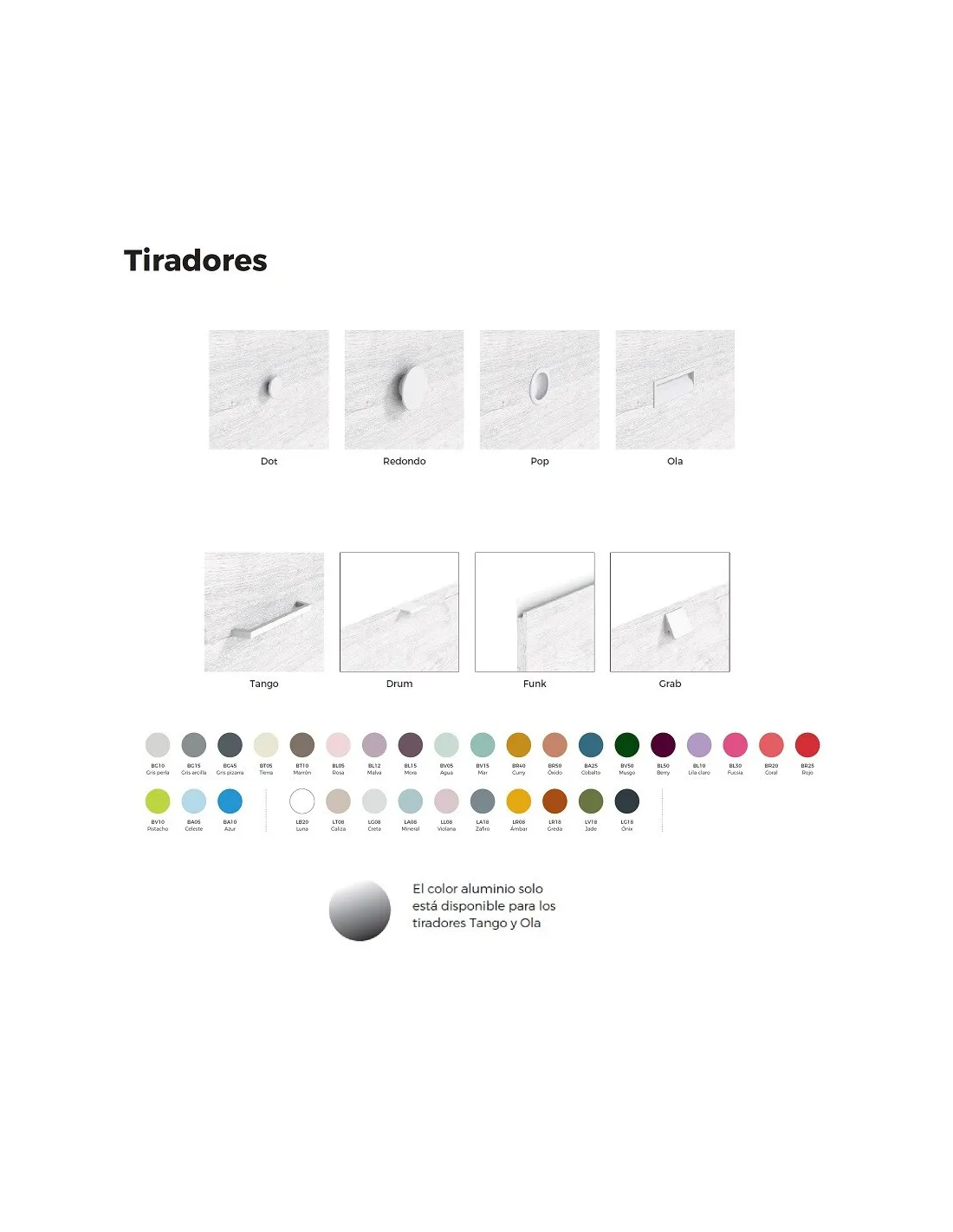 - Tiradores: por defecto se envía el modelo que aparece en la foto principal en el color de combinación.