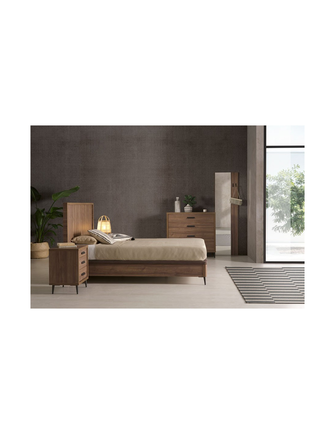 Este canapé Nice pata metálica juvenil está disponible en siete colores de madera para el cajón (nórdico, blanco, nature, roble, nogal y carbón), con la base tapizada con color a elegir igualmente.