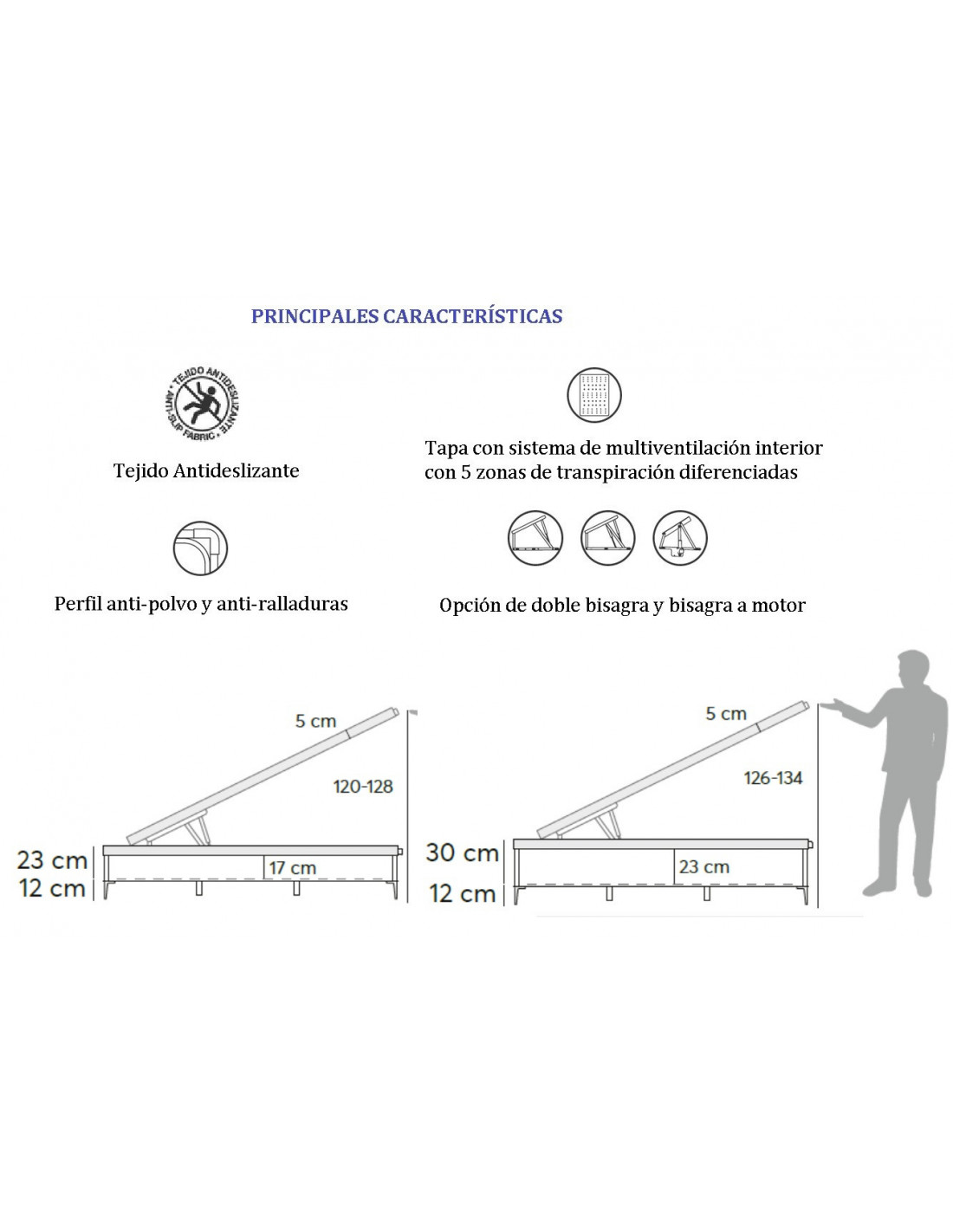 - Altura interior canapé: 17 / 23 cm.
