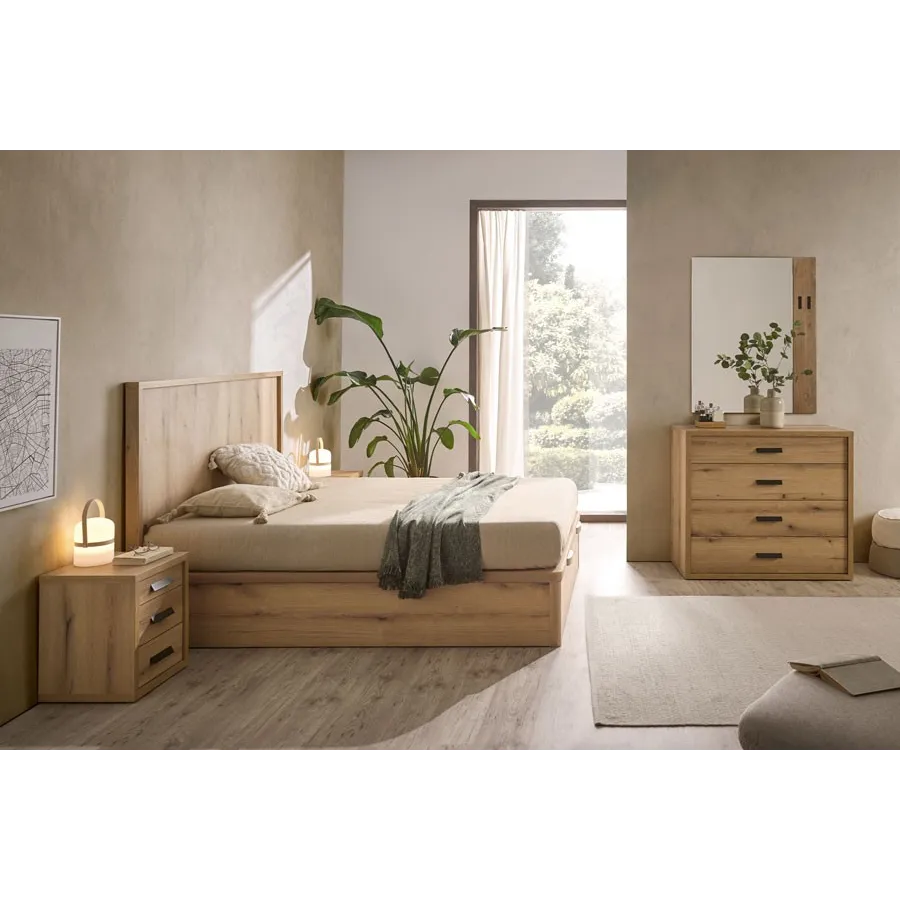El somier metálico de soporte cuenta con refuerzos transversales y longitudinales además del arco metálico. Estos refuerzos evitan deformaciones de la tapa con lo que conseguimos un canapé más duradera. Además, vienen acabadas con tiradores de madera maciza a juego con el resto del canapé.