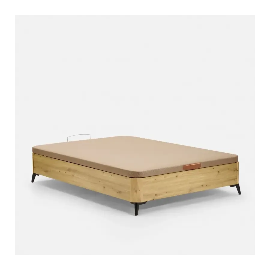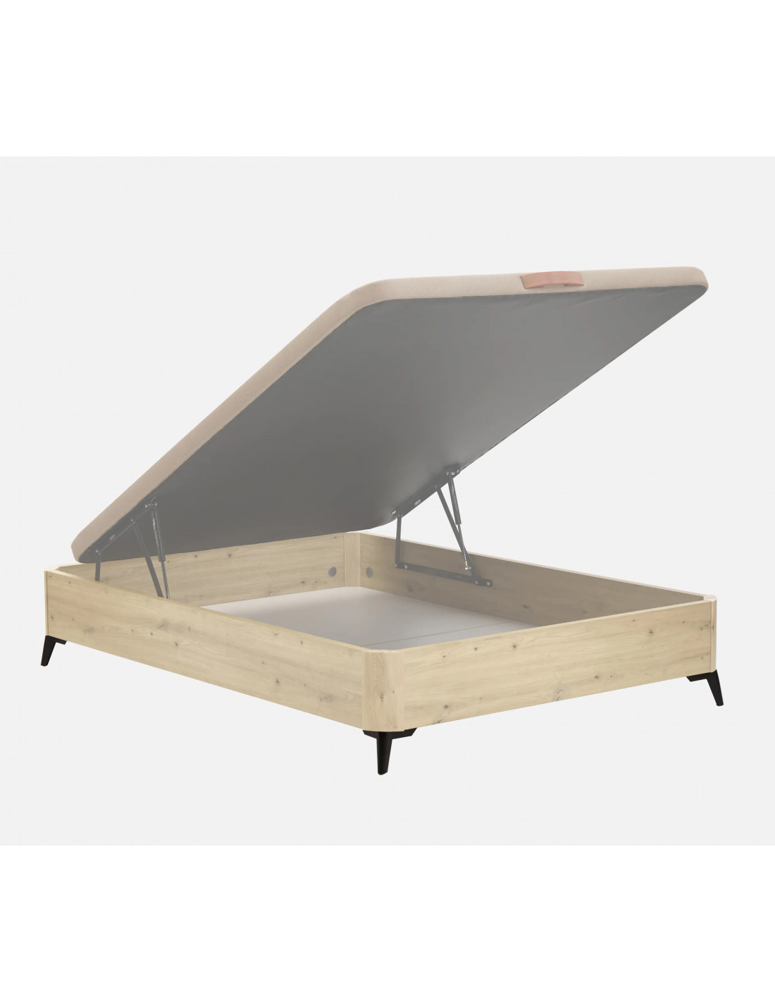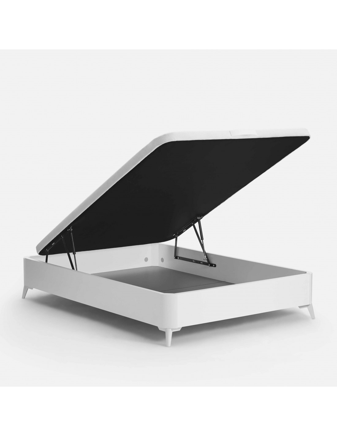 Le ofrecemos este canapé abatible modelo Pata Alta viene con la estructura del cajón del canapé compuesto por tableros de 30 mm. de grosor con un fonde de 16mm. de grosor atornillado, lo que da un plus de estabilidad, resistencia y durabilidad al conjunto. Cuenta con 4 patas metálicas de primera calidad y cuatro patas extra de refuerzo para la zona central del canapé. Base tapizada reforzada con bastidor metálico y tirador de madera, además del sistema hidraúlico de apertura de la más alta calidad.