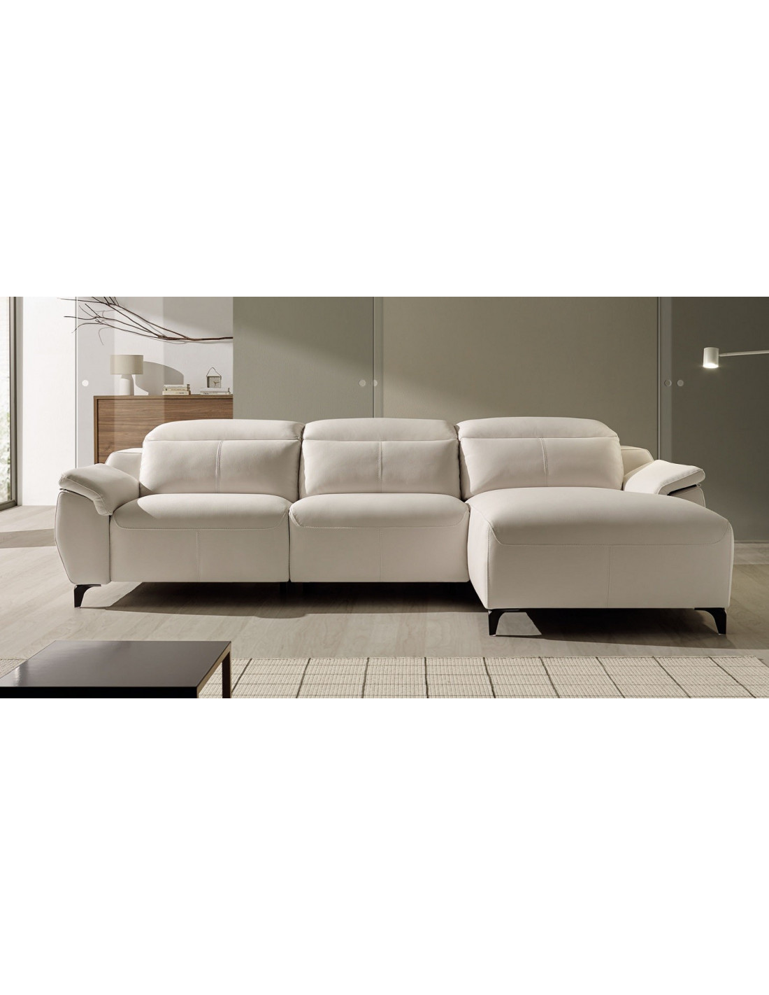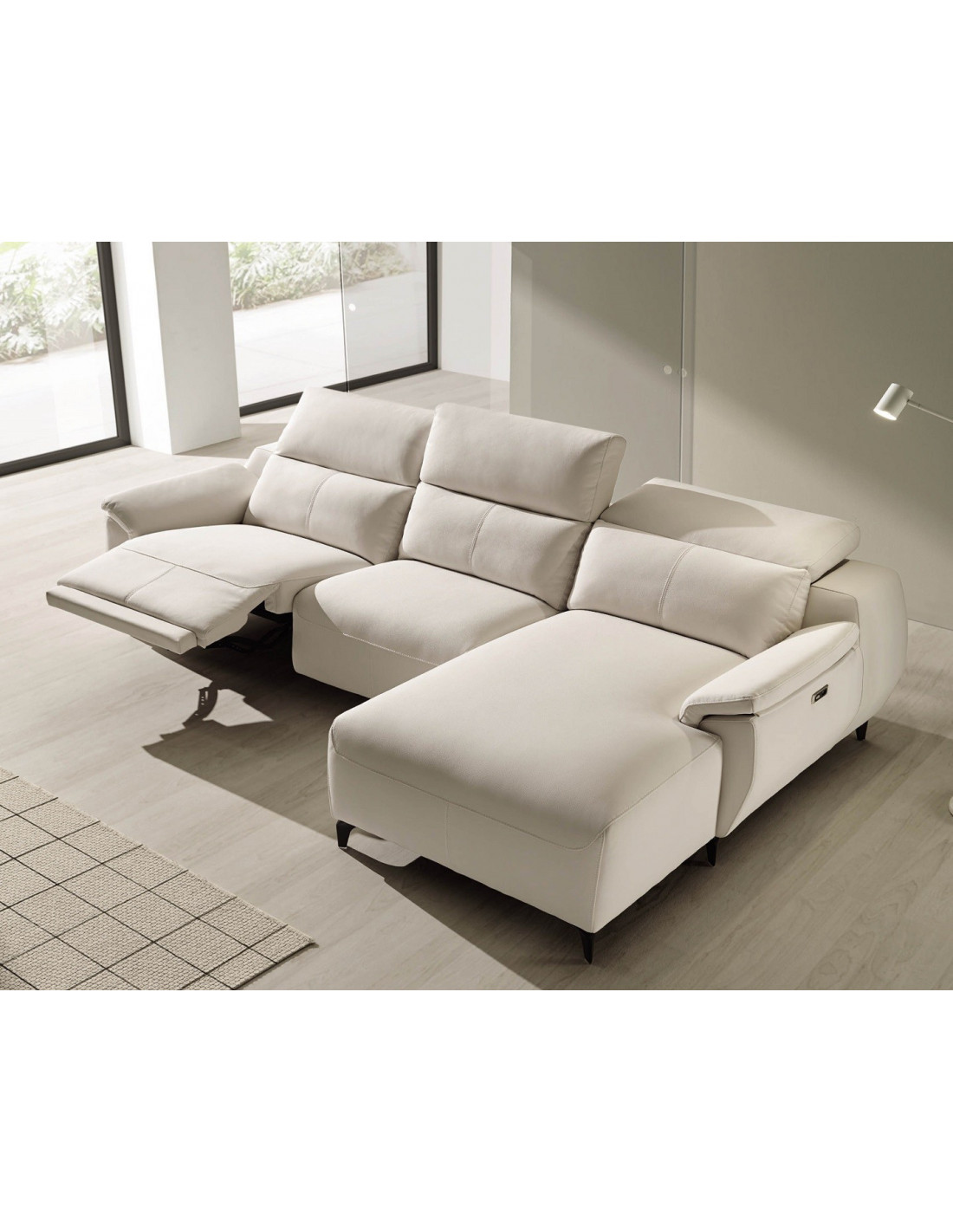- Extras del cabezal: el cabezal es reclinable en todos los casos. Se puede accionar de manera manual (con carraca multiposición) o por motor (permite un ajuste perfecto de la inclinación). Se puede elegir para un solo asiento, dos o los tres, incluyendo el cabezal del chaisselongue.