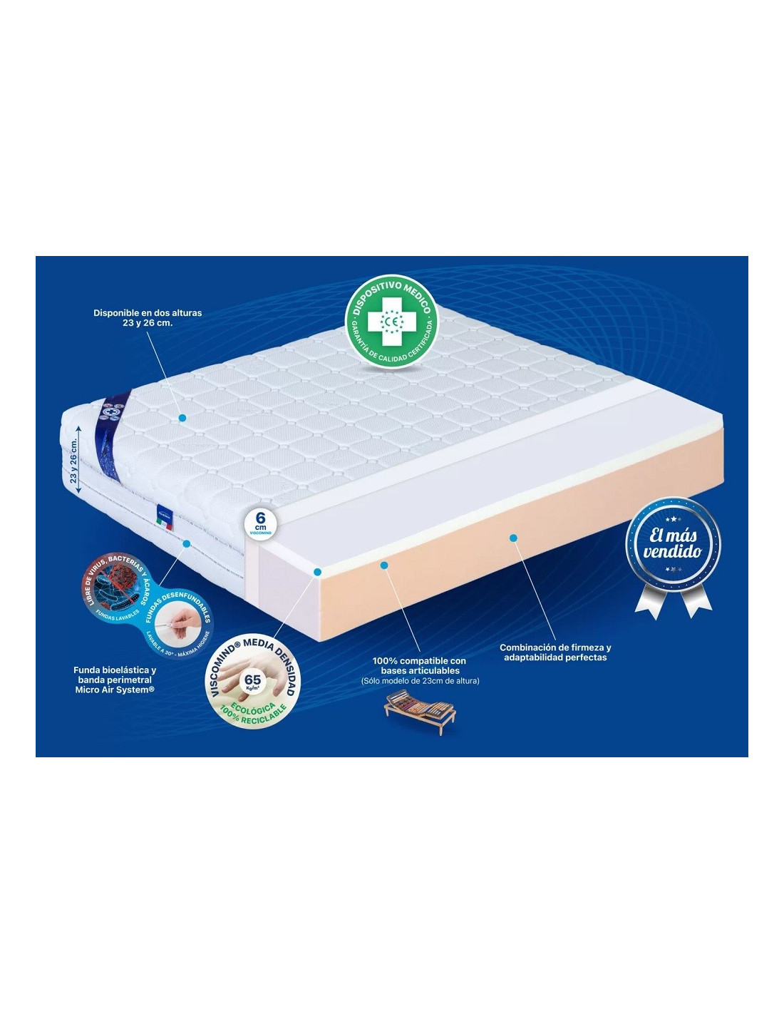 Colchón Plus Salute modelo Visco Bayscent h28, dispositivo médico con certificación sanitaria