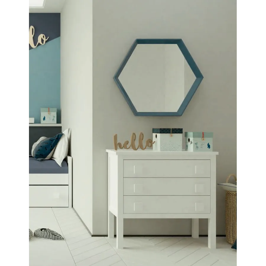 Este modelo de Cómoda madera 3 cajones con patas de diseño colonial puede venir en varias terminaciones lacadas y barnizadas a su elección: