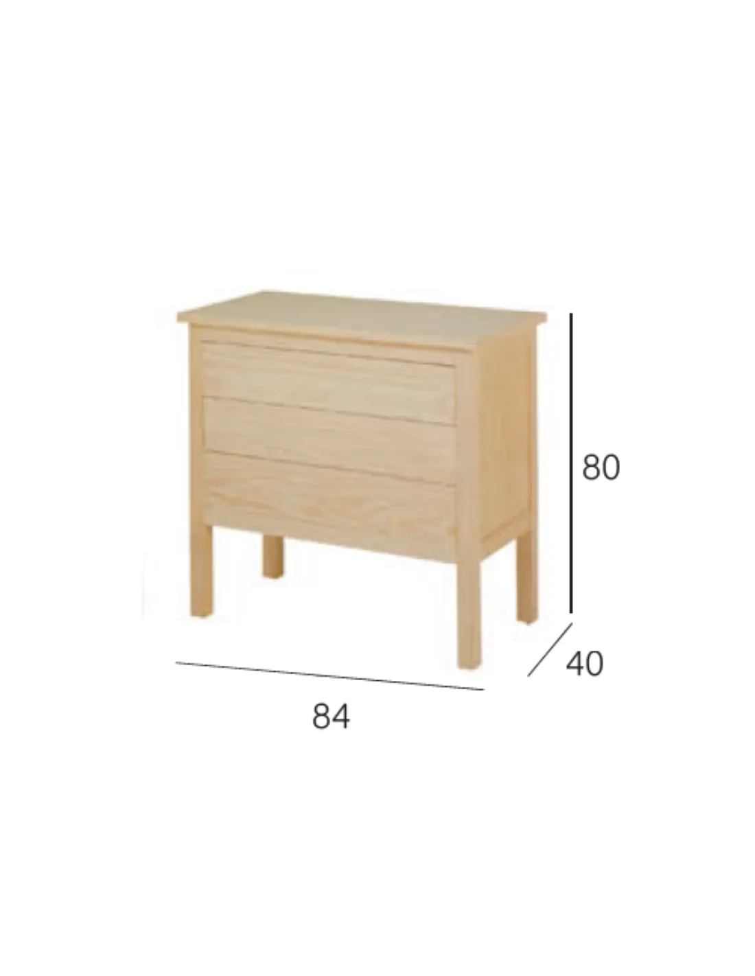 Esta cómoda rústica en madera con 3 cajones tiene las medidas que detallamos a continuación en largo x alto x fondo (cm.):