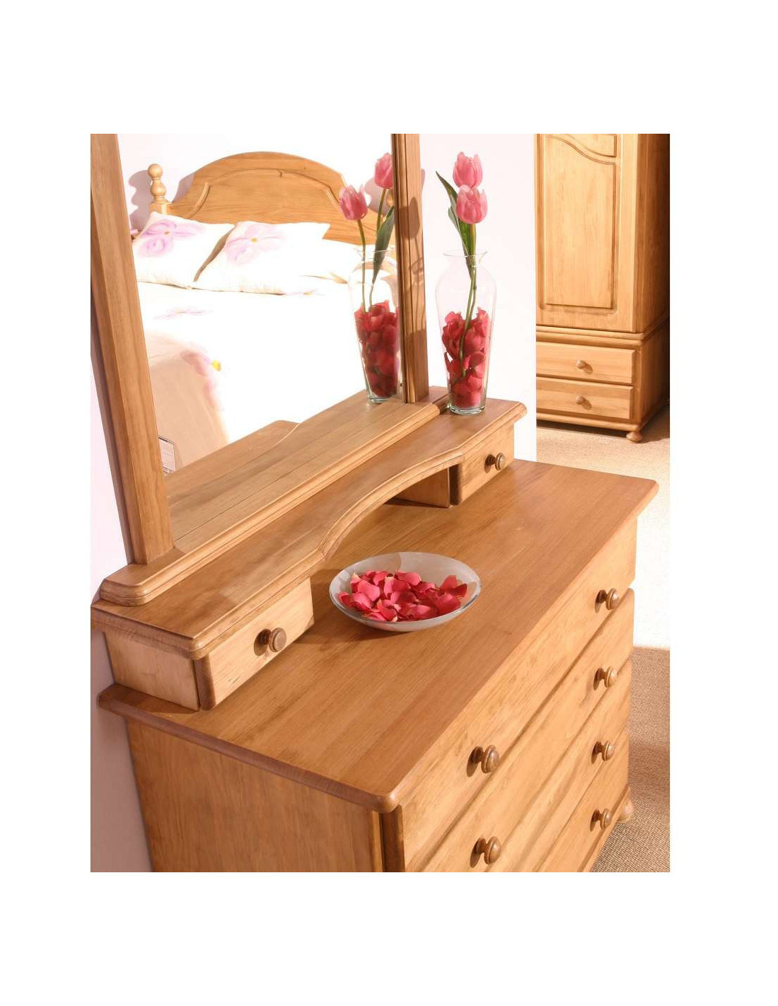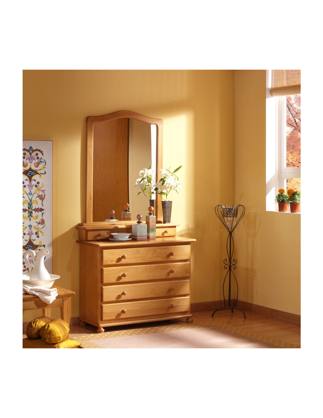 Cómoda provenzal con espejo y joyero a juego en madera de pino macizo
