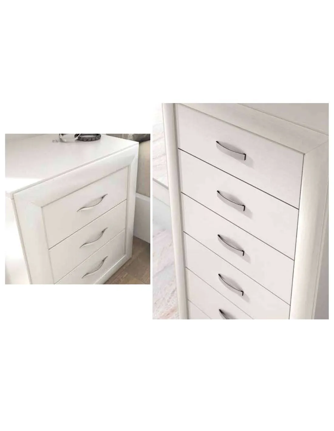 Estos muebles de dormitorio clásico pueden venir en dos acabados disponibles al mismo precio: nogal tintoretto o blanco.