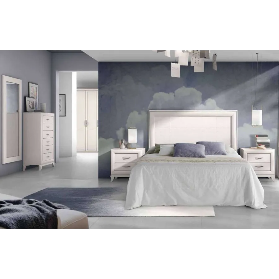 Estos muebles de dormitorio tienen un diseño clásico con un toque actual con las patas de madera macizas, y cuentan con remates de gran calidad como las guías de los cajones o los moldurones lacados a juego. Además, Nos permite elegir color y medidas tanto de cabecero como de las mesitas para adaptarnos lo mejor posible a vuestras necesidades.
