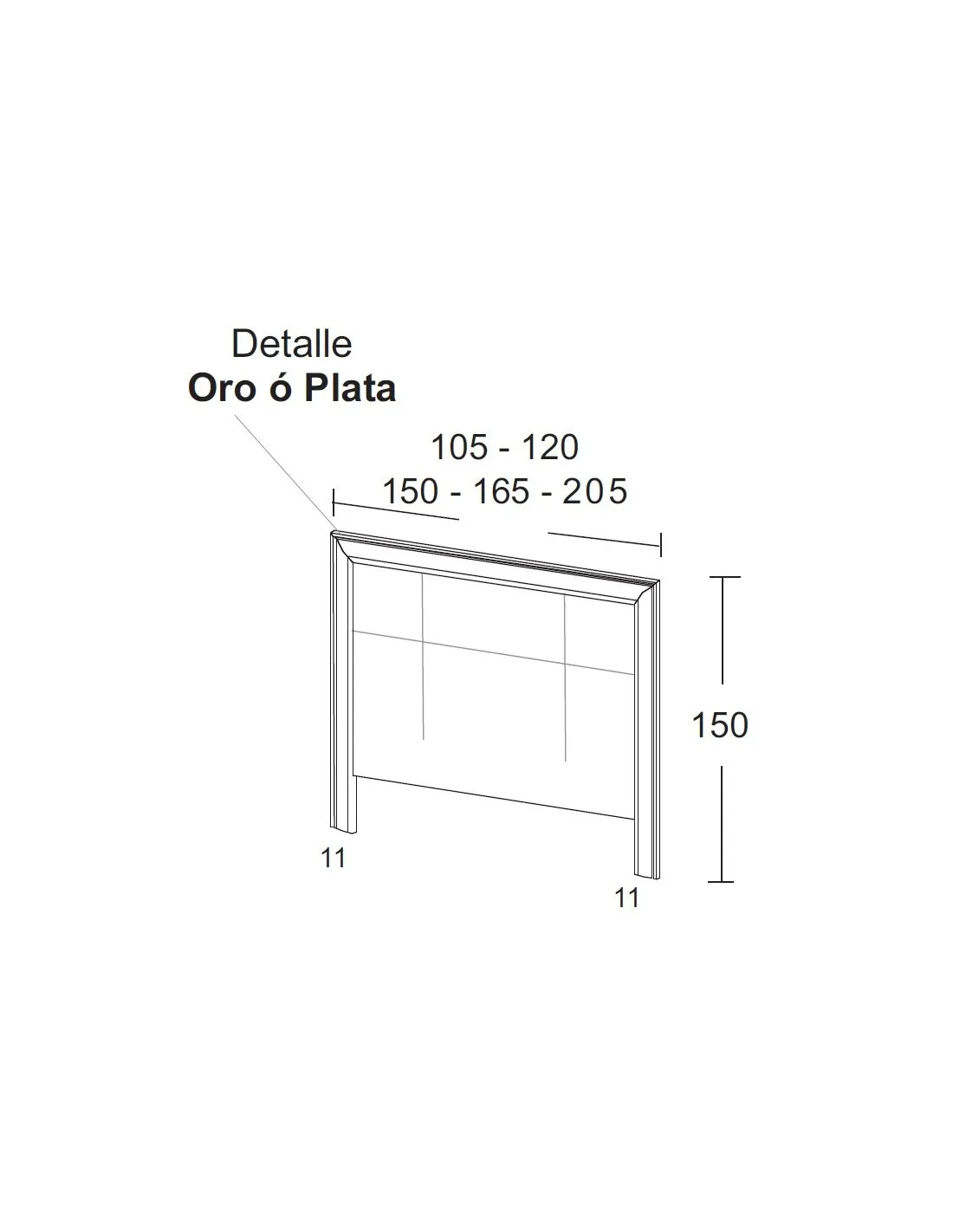 - Cabecero clásico: 150 - 170 cm. de alto y anchos disponibles de 105 - 120 - 150 - 165 - 205 cm.