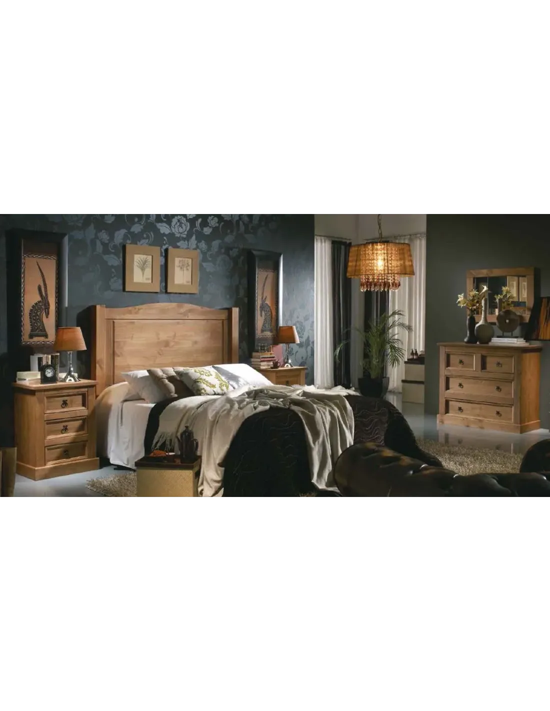 Dormitorio de inconfundible estilo colonial. Muebles de dormitorio con un inconfundible estilo rústico ideal para los amantes de los materiales nobles como la madera natural de pino.