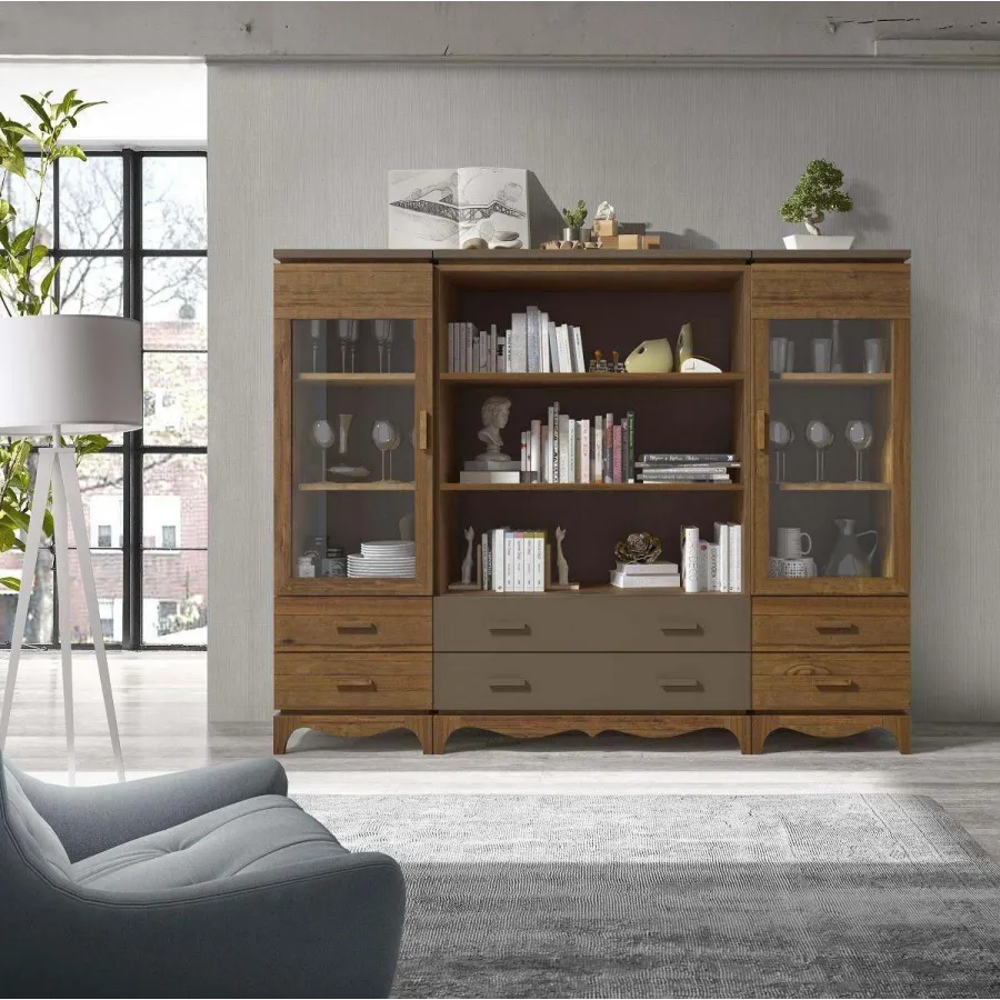 Se compone de varios módulos de estantería y vitrina con los que se pueden hacer composiciones a medida.