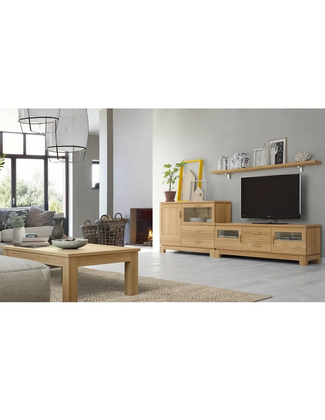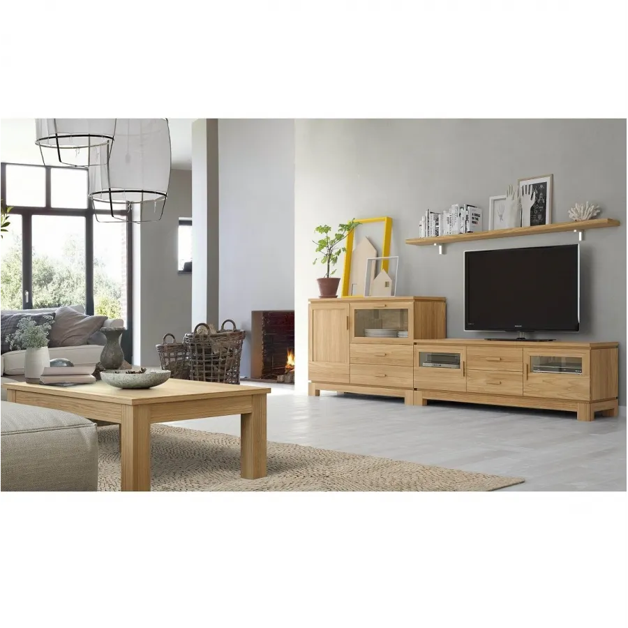 Mueble de salón contemporáneo 270 con mesa de centro a juego fabricado en madera maciza de pino
