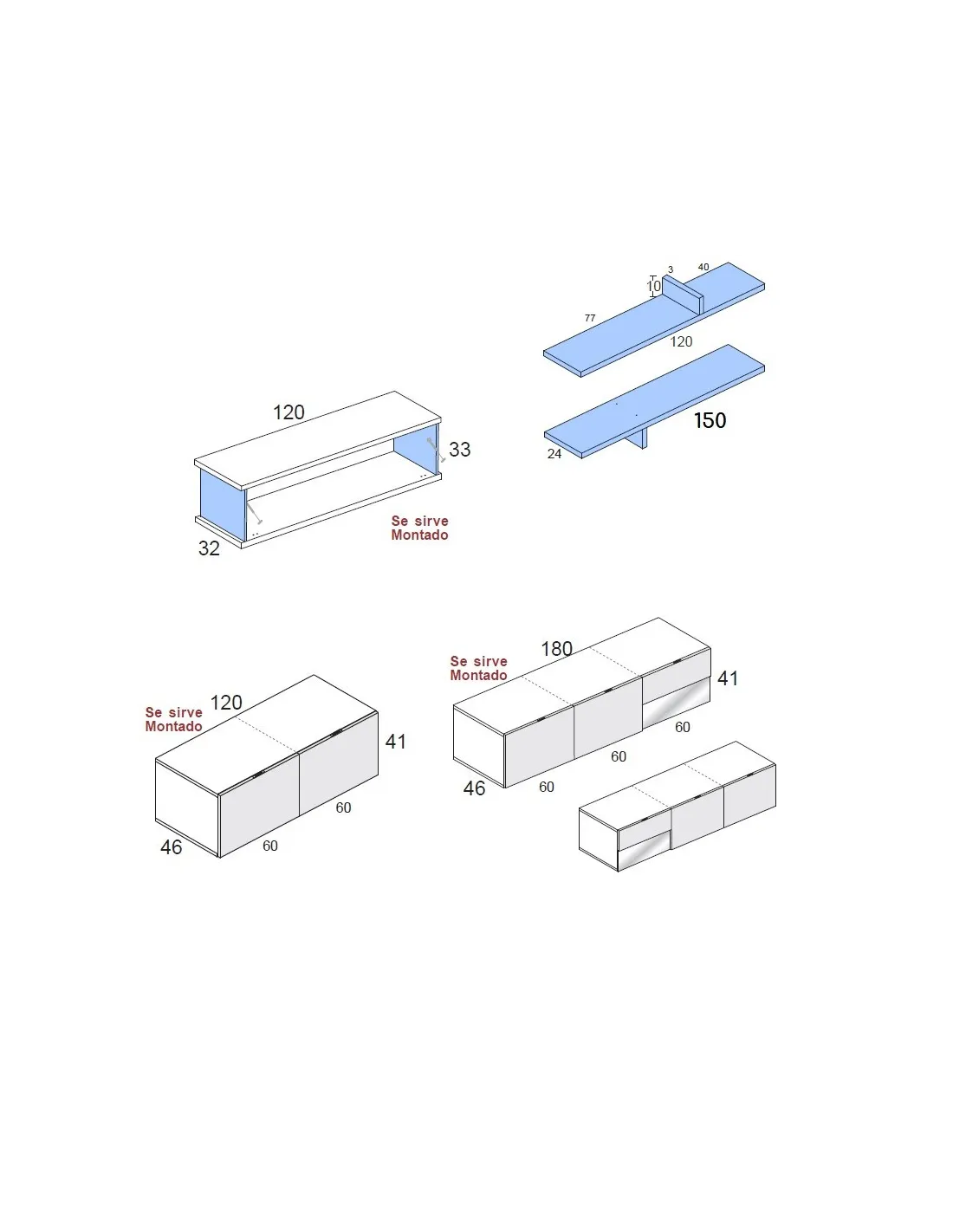 - Módulo de tv 2 puertas: 120 x 41 x 46 cm.