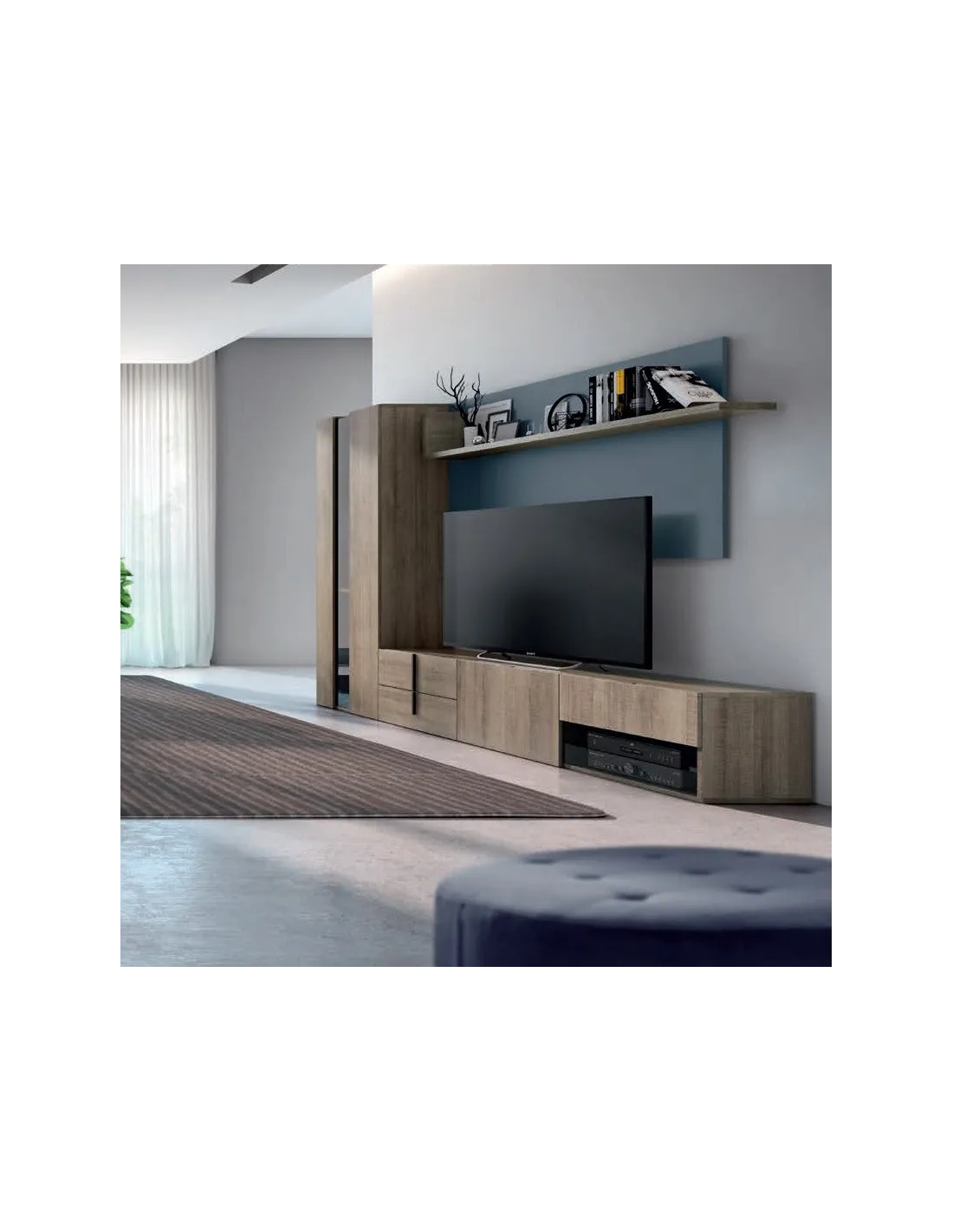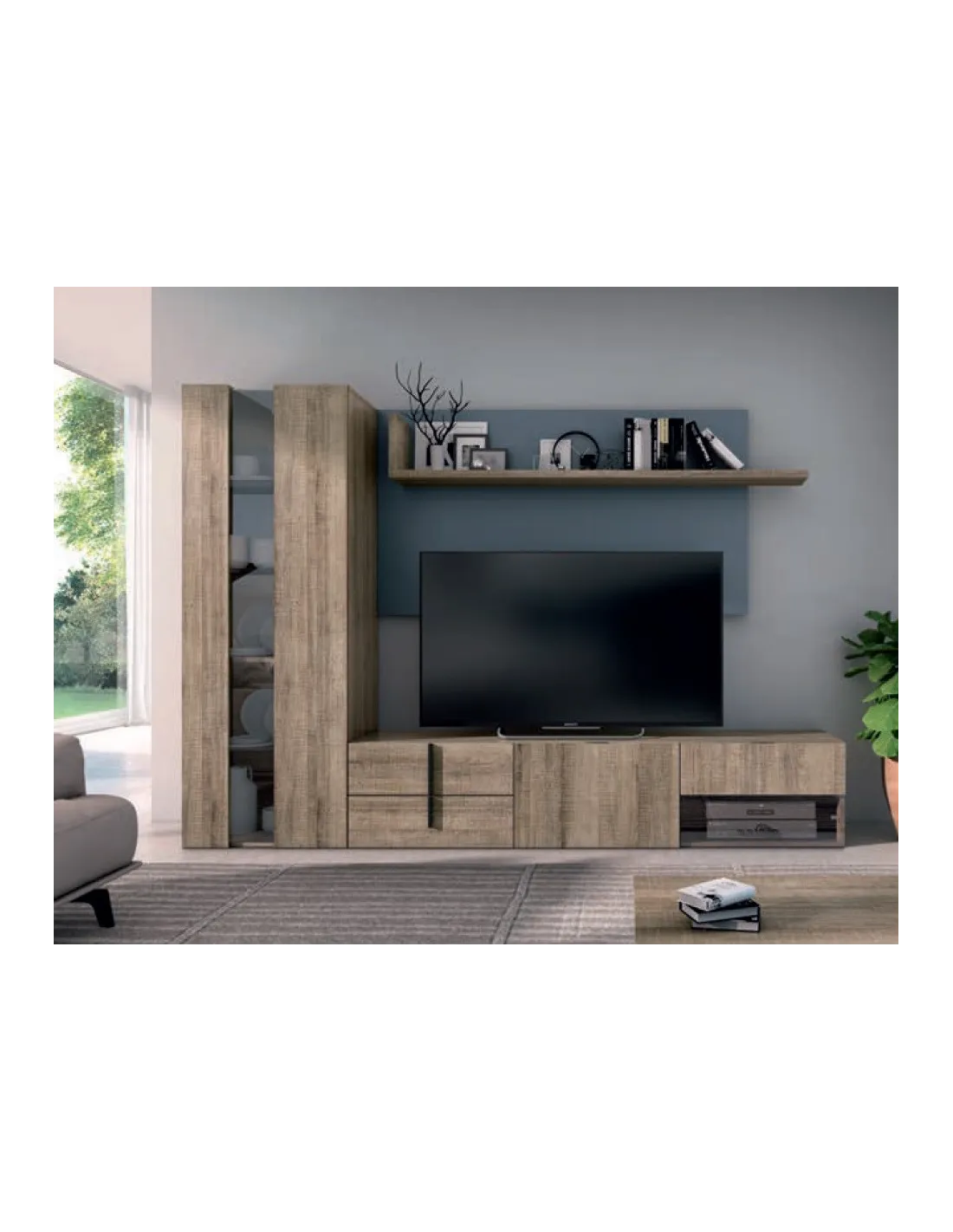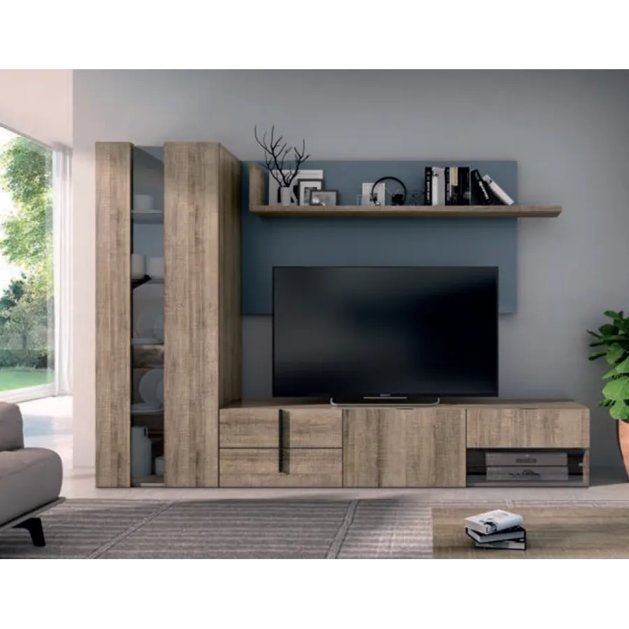 Este mueble de salón 815 viene con un largo total de 240 cm. La altura es variable en función de la colocación del mueble de pared. Cada uno de sus módulos cuentan con las siguientes medidas en largo x alto x fondo (en cm.):