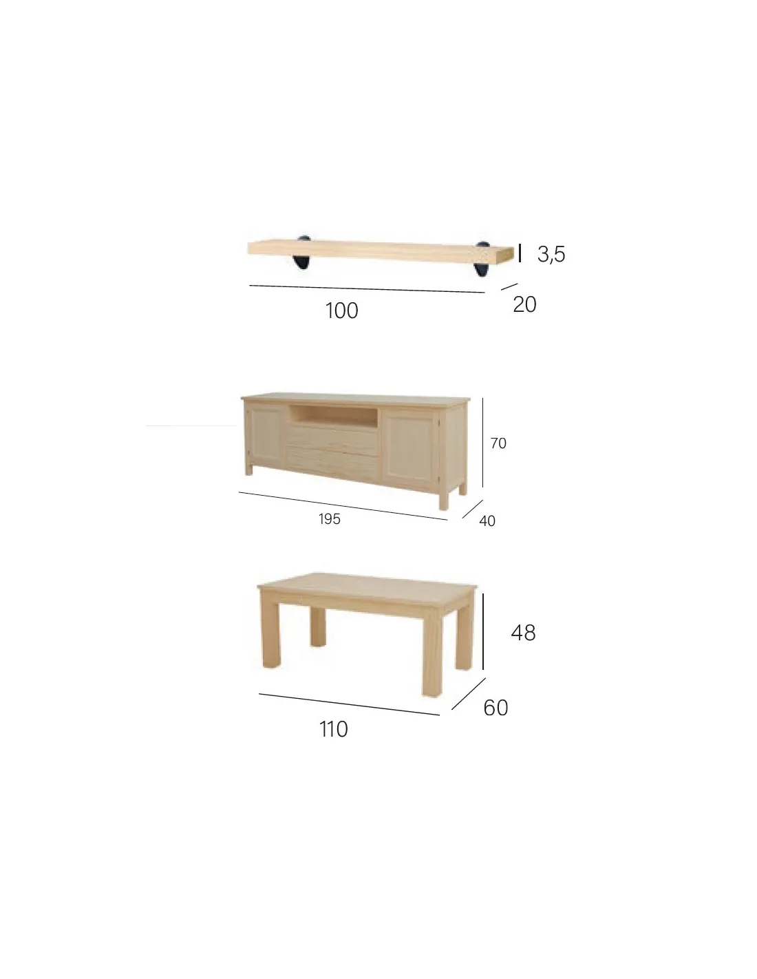 - Mueble tv: 195 x 70 x 40