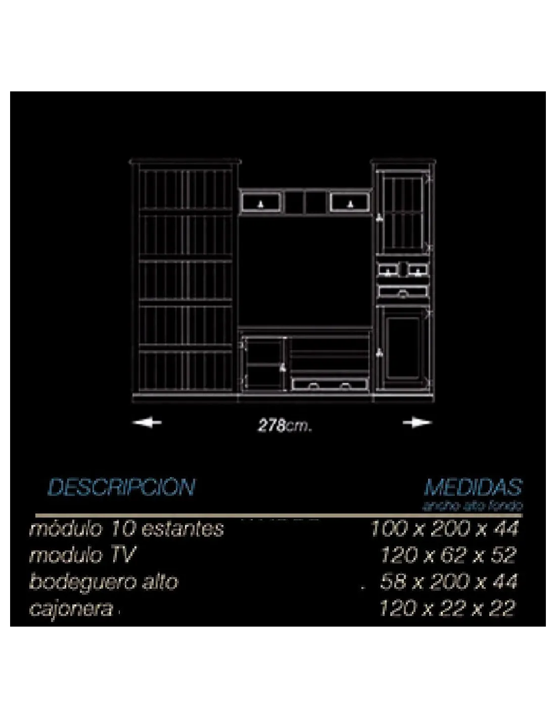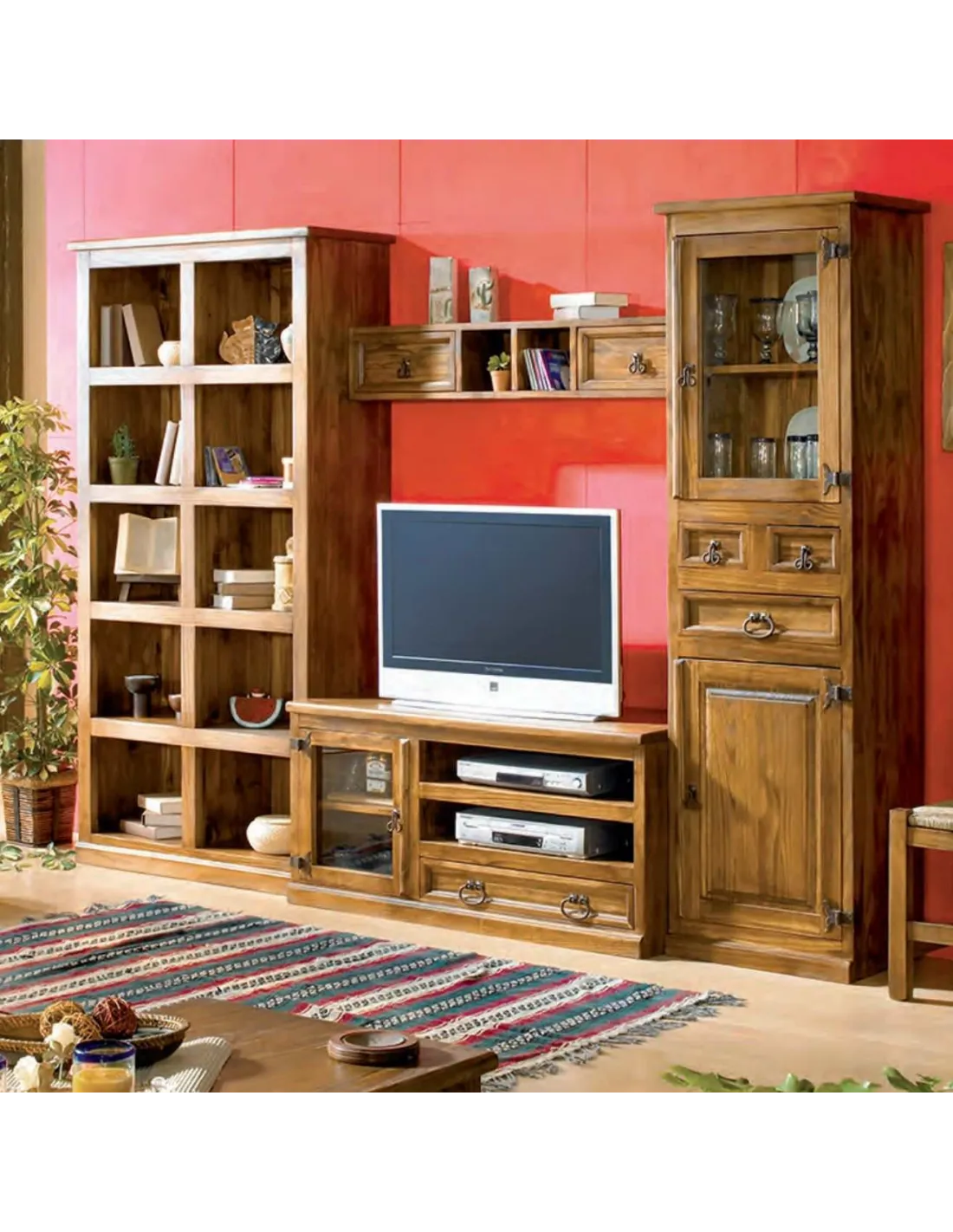 Esye mueble de salón rústico mexicano 278 cm. está compuesto por los siguientes módulos: